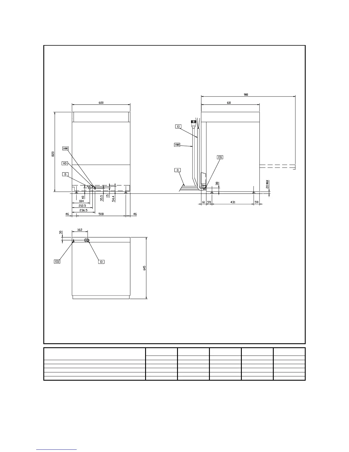 HWI - Hot water inlet G 3/4" G 3/4" G 3/4" G 3/4" G 3/4"