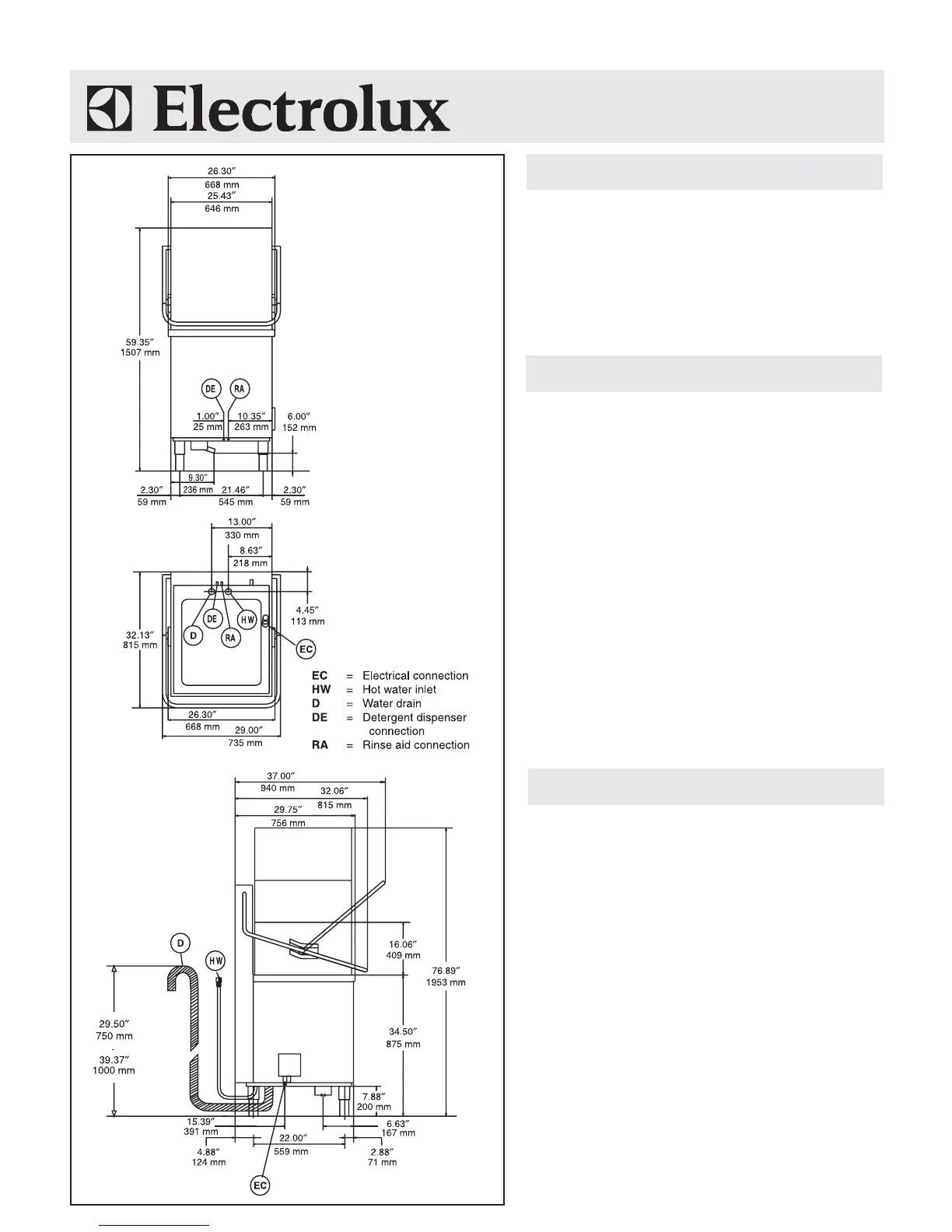 Maximum drain height: 39" (1000 mm ) MAX