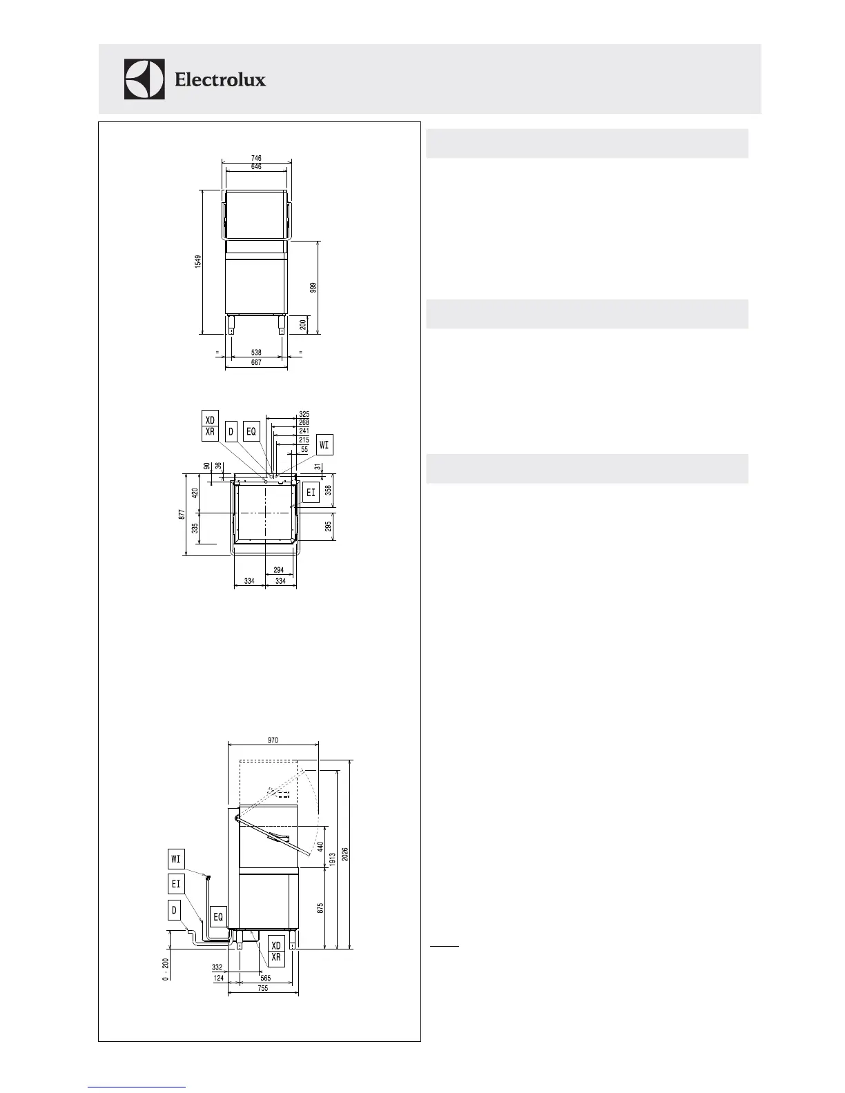 External dimensions, Width:746 mm