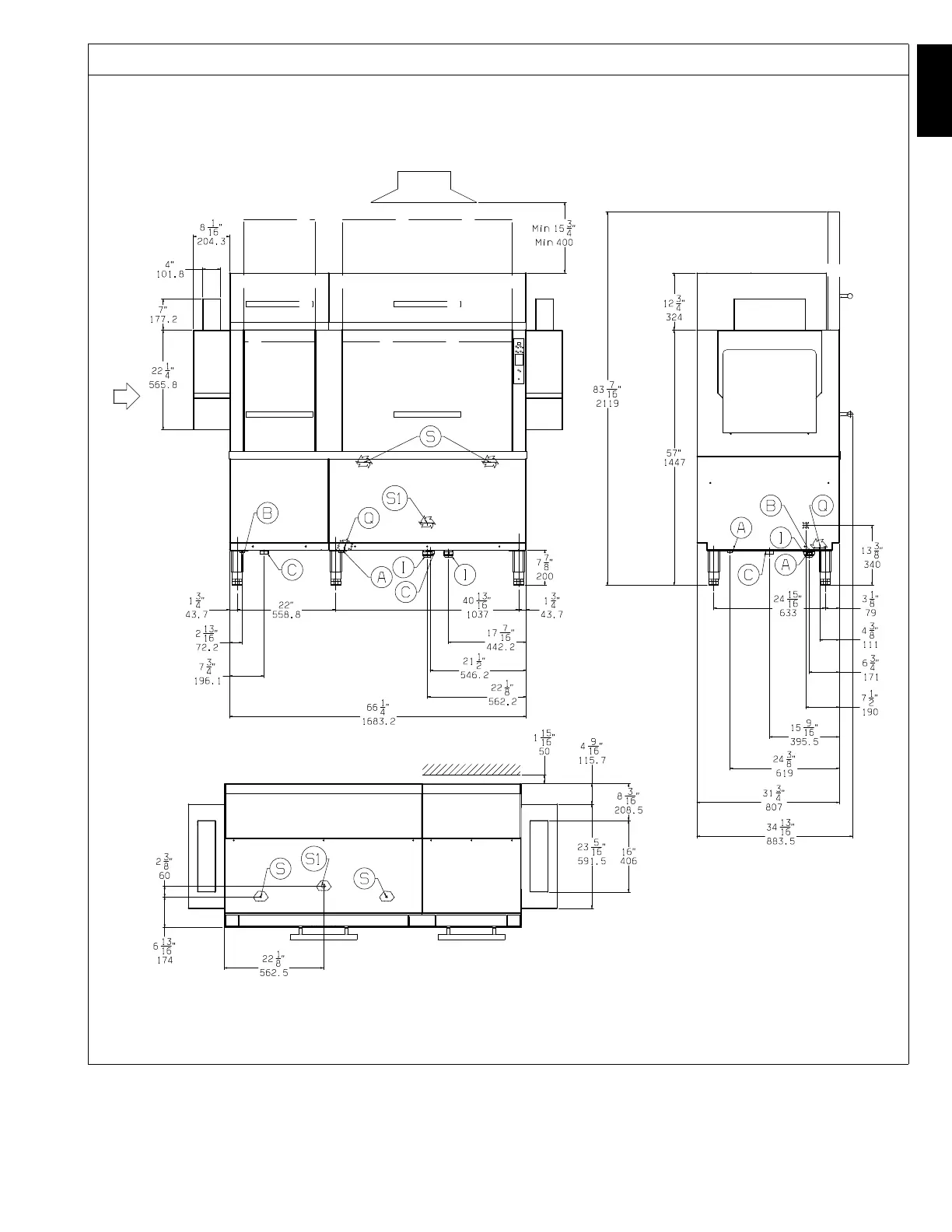 Installation diagram - rack-type dishwasher, 66” right