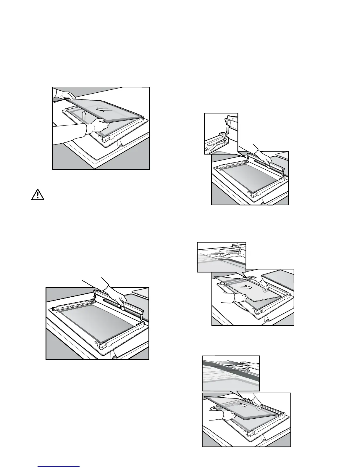 • Insertthesmallerclearglasspanel(whentted)rstfrom