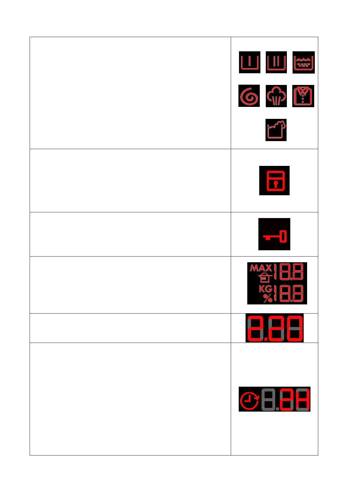 Group of icons representing the weight information of the laundry inside