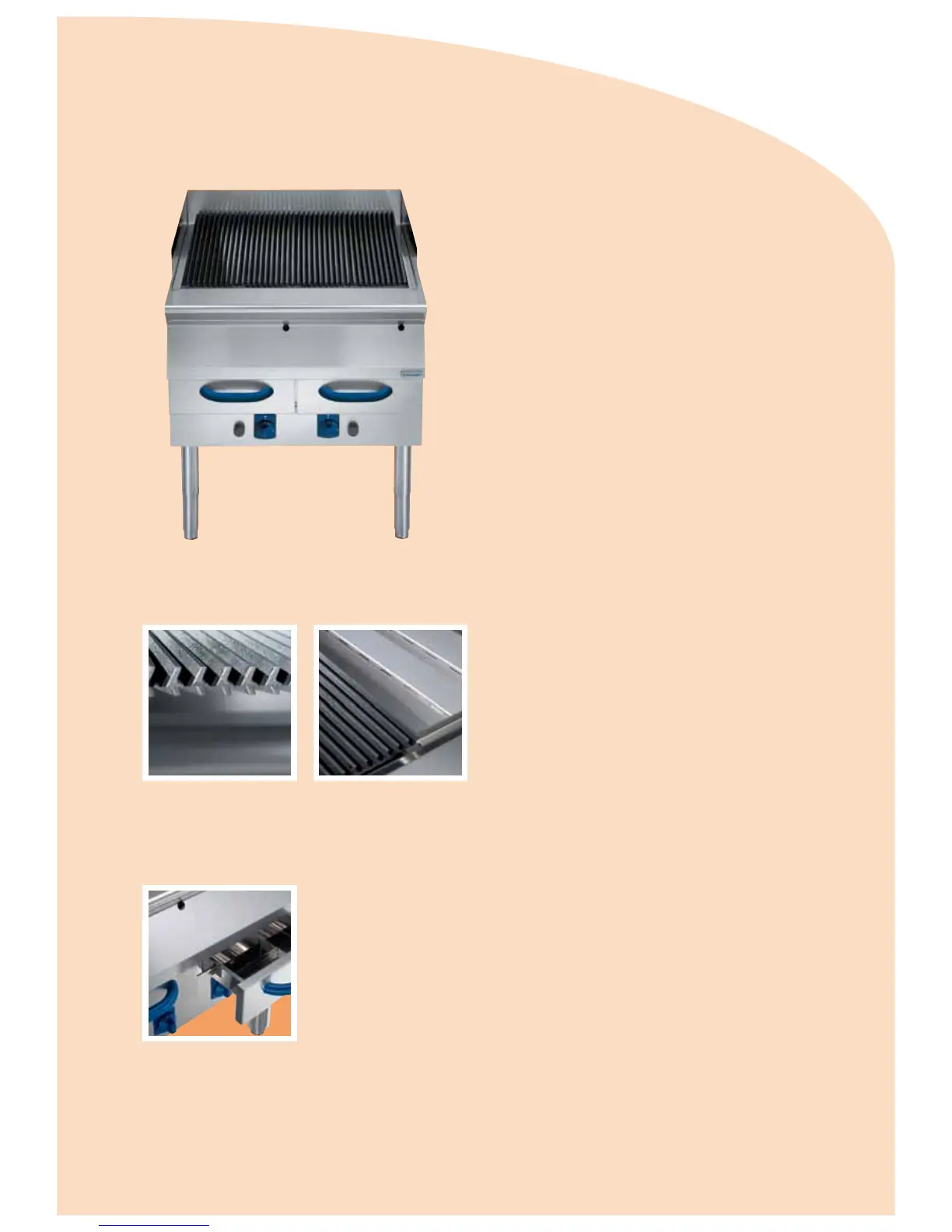 The burners are shielded by special stainless steel radiant covers to both protect
