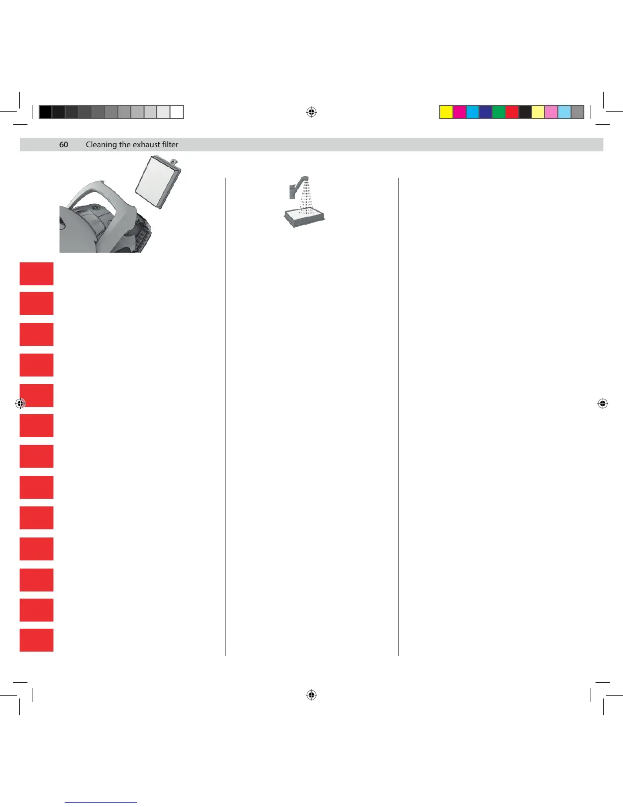 4. Het uitwasbare uitlaatfilter reinigen. Spoel de