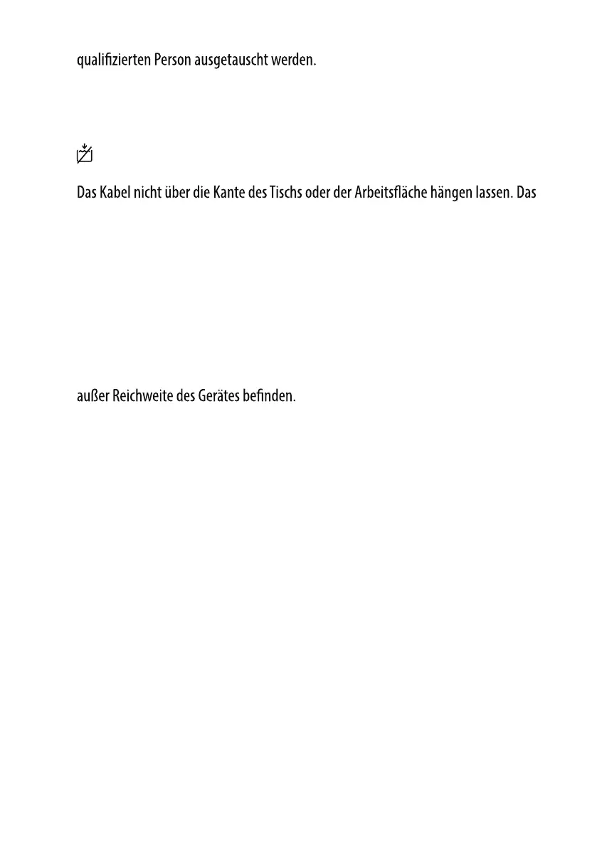 Kabel darf nicht mit einer heißen Fläche, einschließlich Ofen, in Kontakt kommen.