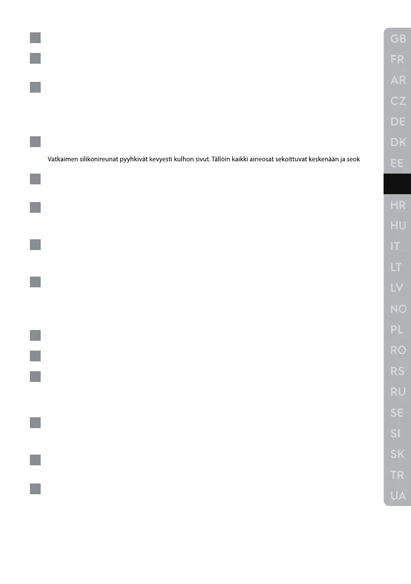 • Roiskesuojan käyttöä ei suositella raskaille taikinaseoksille (esim. leipätaikina). Välttääksesi jauhon roiskeita