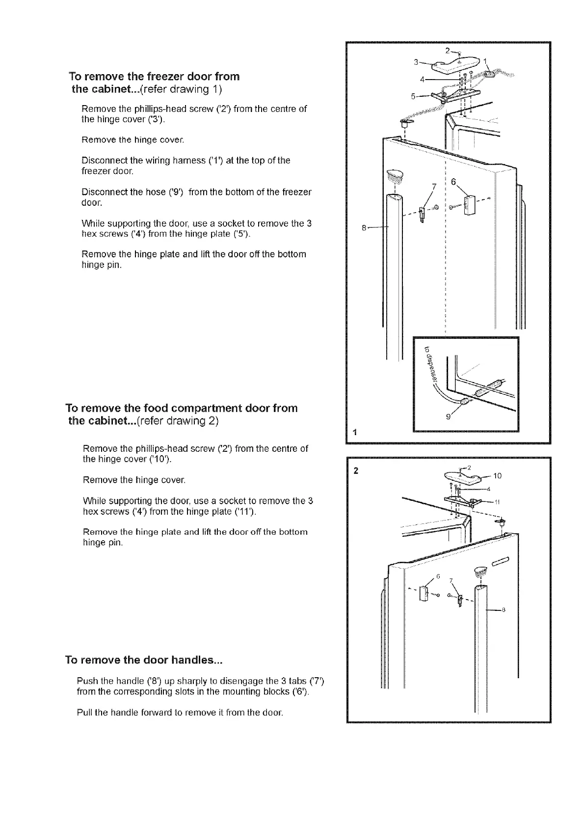 Electrolux B Series - Door Removal and Handle Replacement; Removing the Freezer Door; Removing the Food Compartment Door; Removing Refrigerator Door Handles