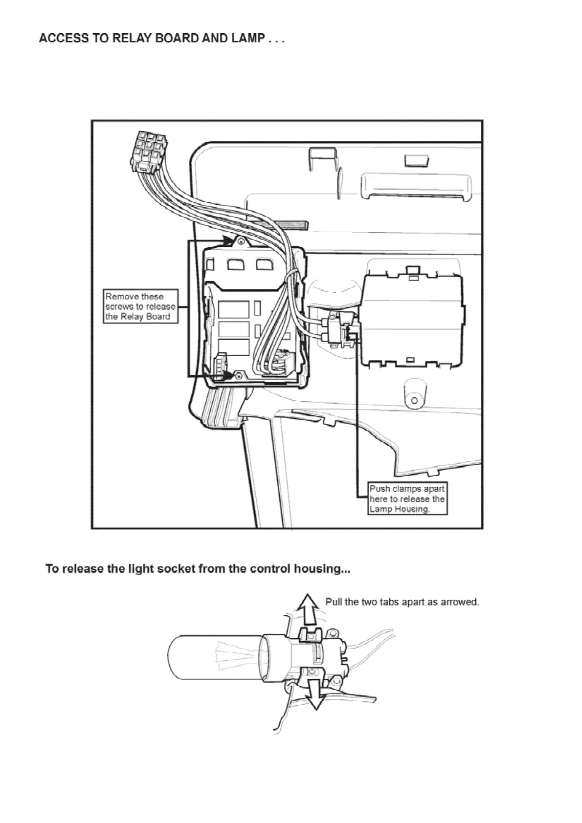 Electrolux B Series - Accessing Relay Board and Lamp Housing; Releasing Light Socket from Control Housing