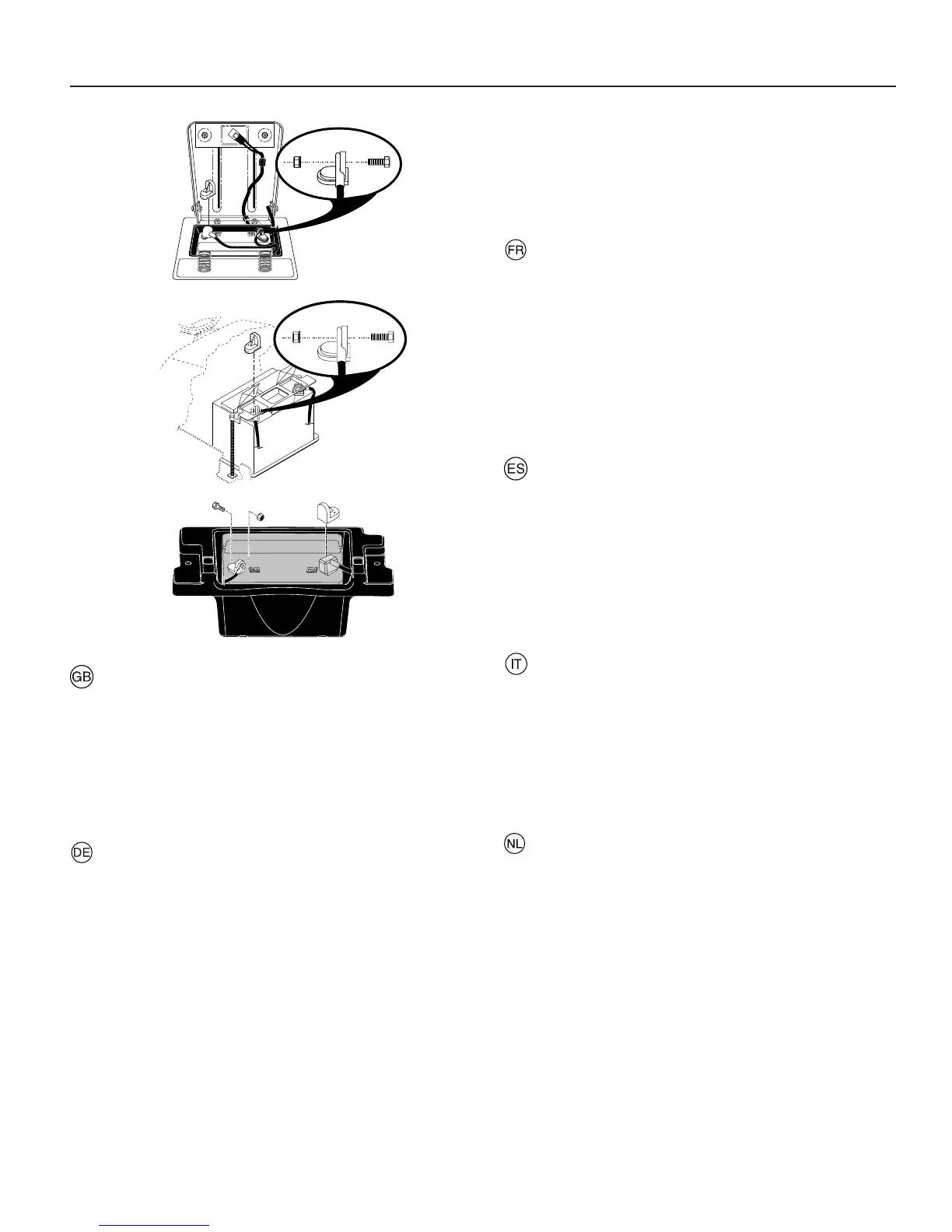 kabel op (-). Schroef de kabels vast. Smeer de accupolen in
