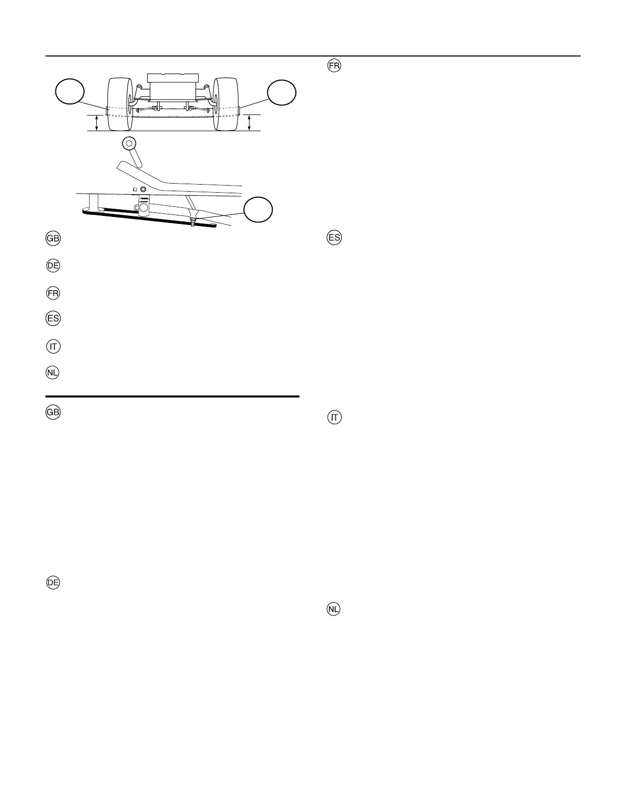 • Um eine Seite des Mähwerks abzusenken, die Hubstangen