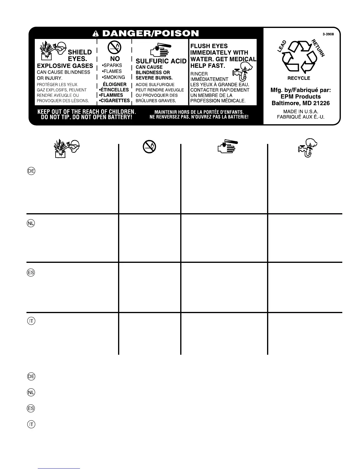 TENERE LONTANO DALLA PORTATA DEI BAMBINI. NON INCLINARE. NON APRIRE LA BATTERIA!