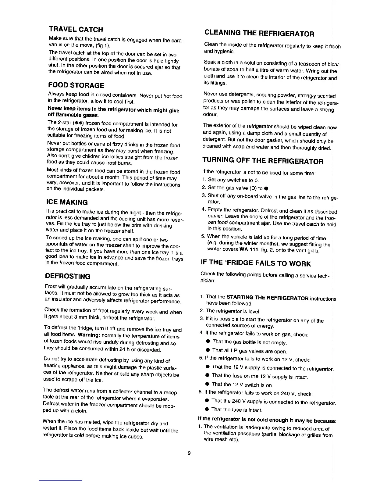 Electrolux CARAVAN RM 4360 - Defrosting Procedure; Troubleshooting Refrigerator Failures