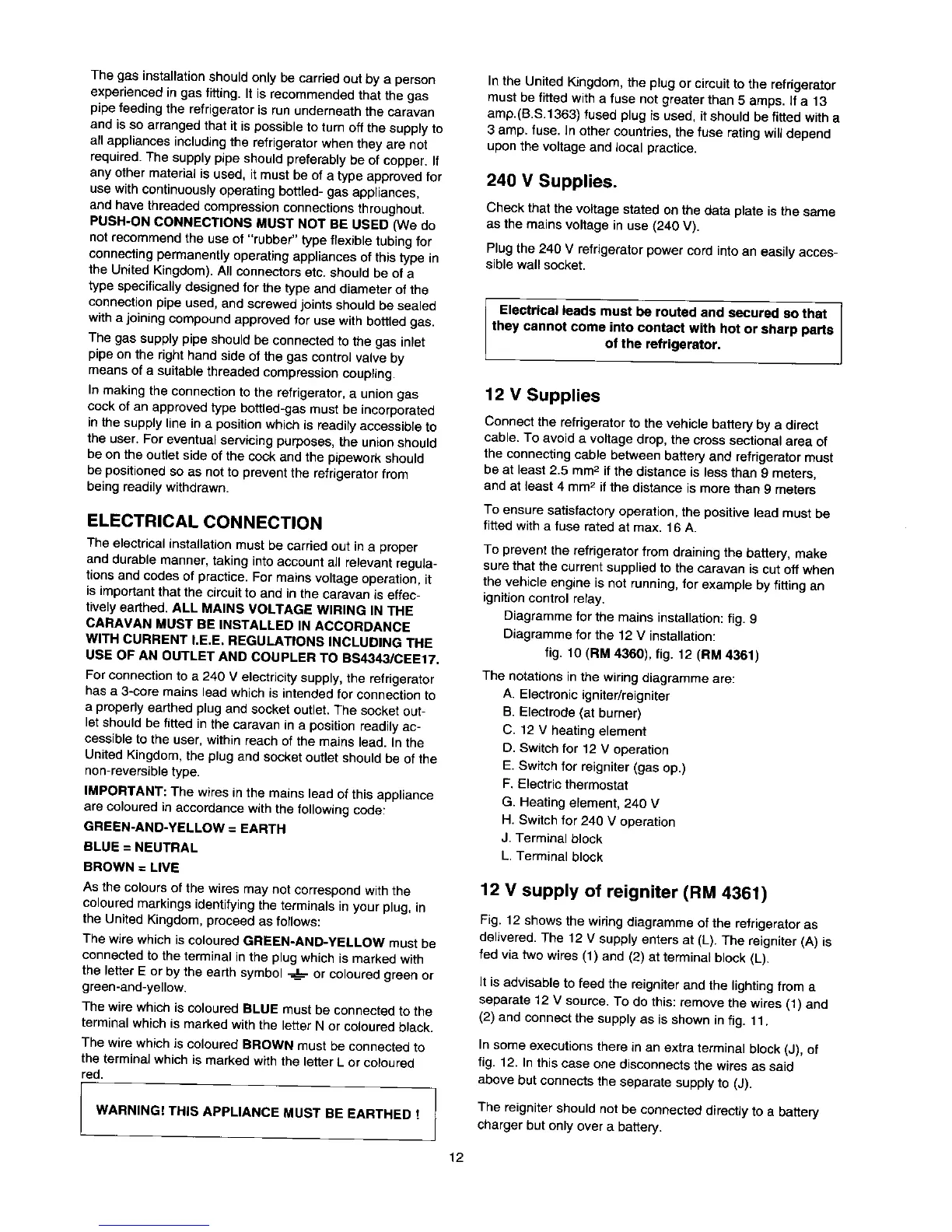 Electrolux CARAVAN RM 4360 - Electrical Connection Guide