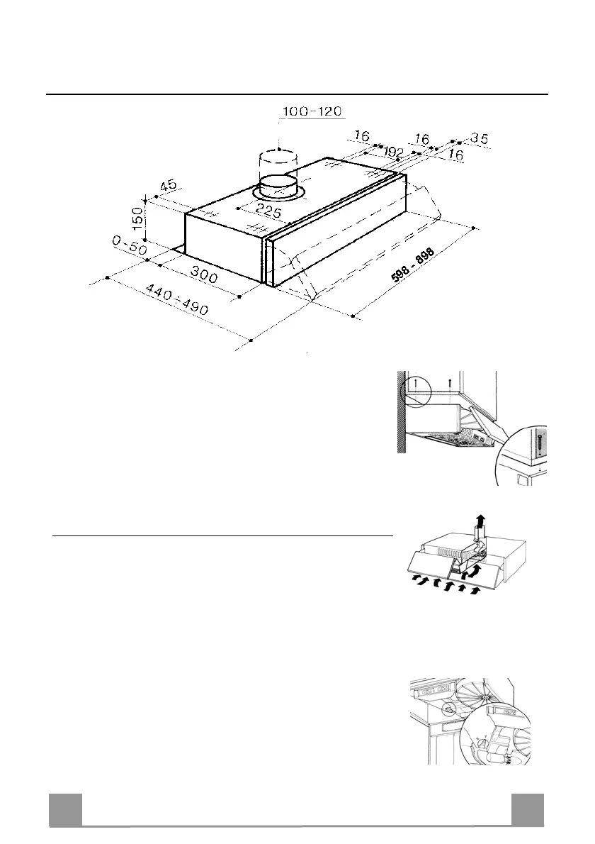 • Bevestig de wasemkap aan de meubel met de schroeven van