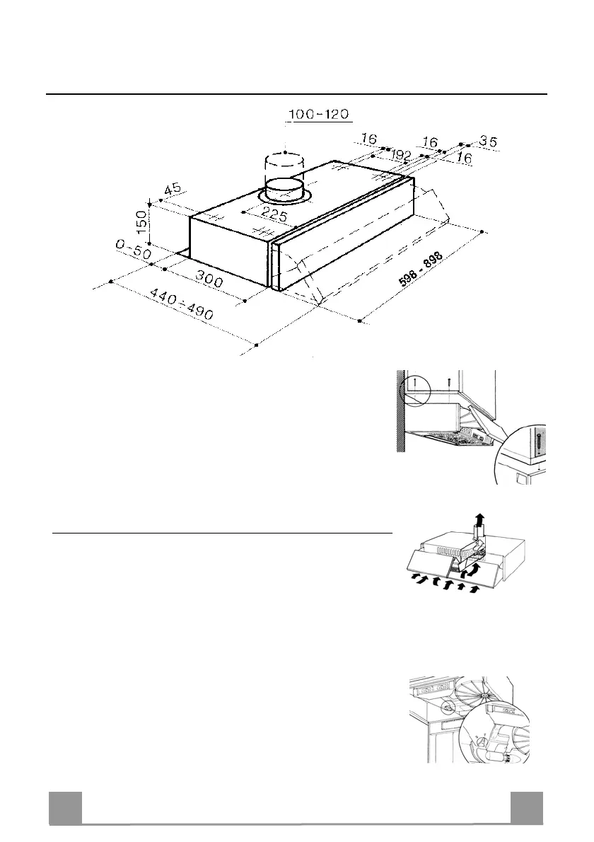• Fissare la cappa al mobile con le viti di lunghezza 44,4 mm