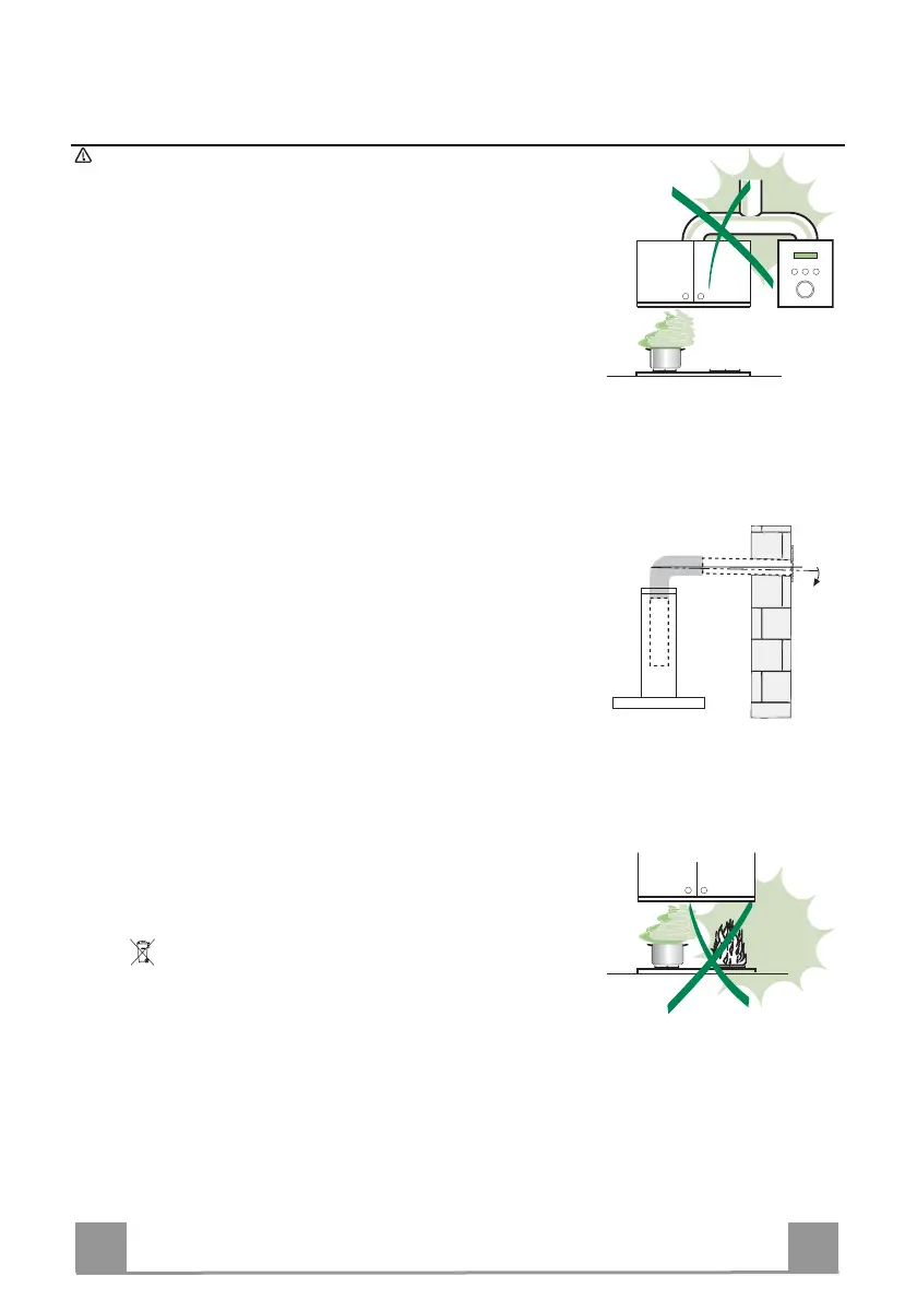 • Anslut inte köksfläkten till frånluftkanaler som leder förbränningsgaser (från pannor, eldstäder etc.).