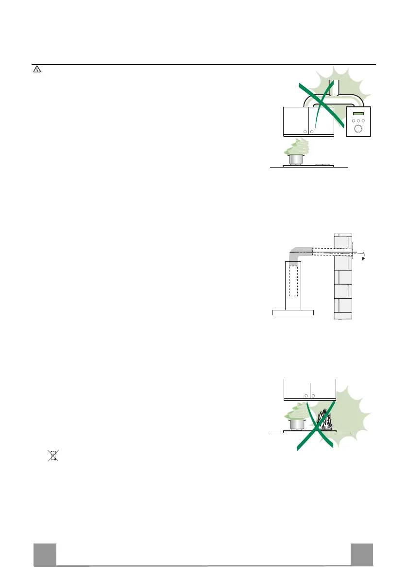 • Не соединять вытяжку с выпускными трубами дымов от процессов горения (котлы, камины и проч.).