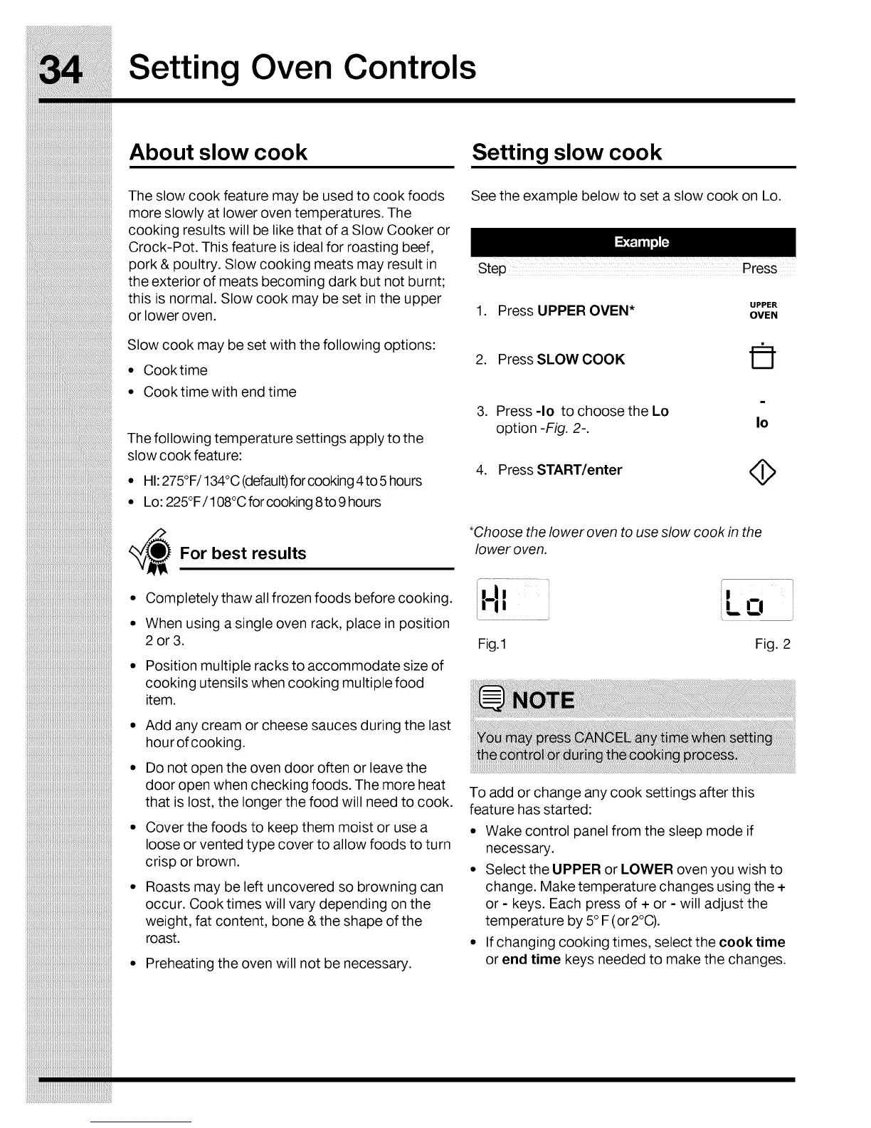 * Lo: 225°F / 108°C for cooking 8to 9 hours
