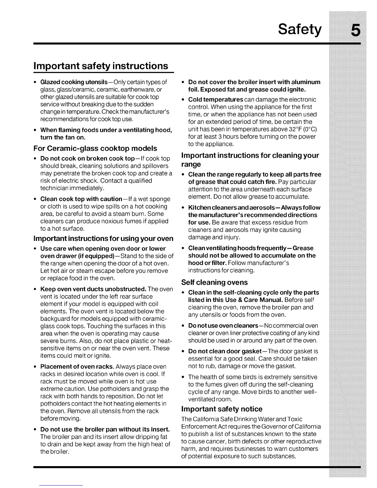 listed in this Use & Care Manual. Before self