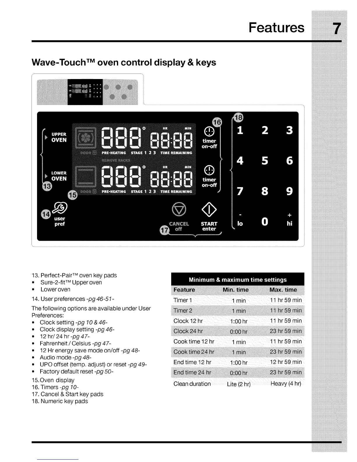 Wave-TouchTM oven control display & keys
