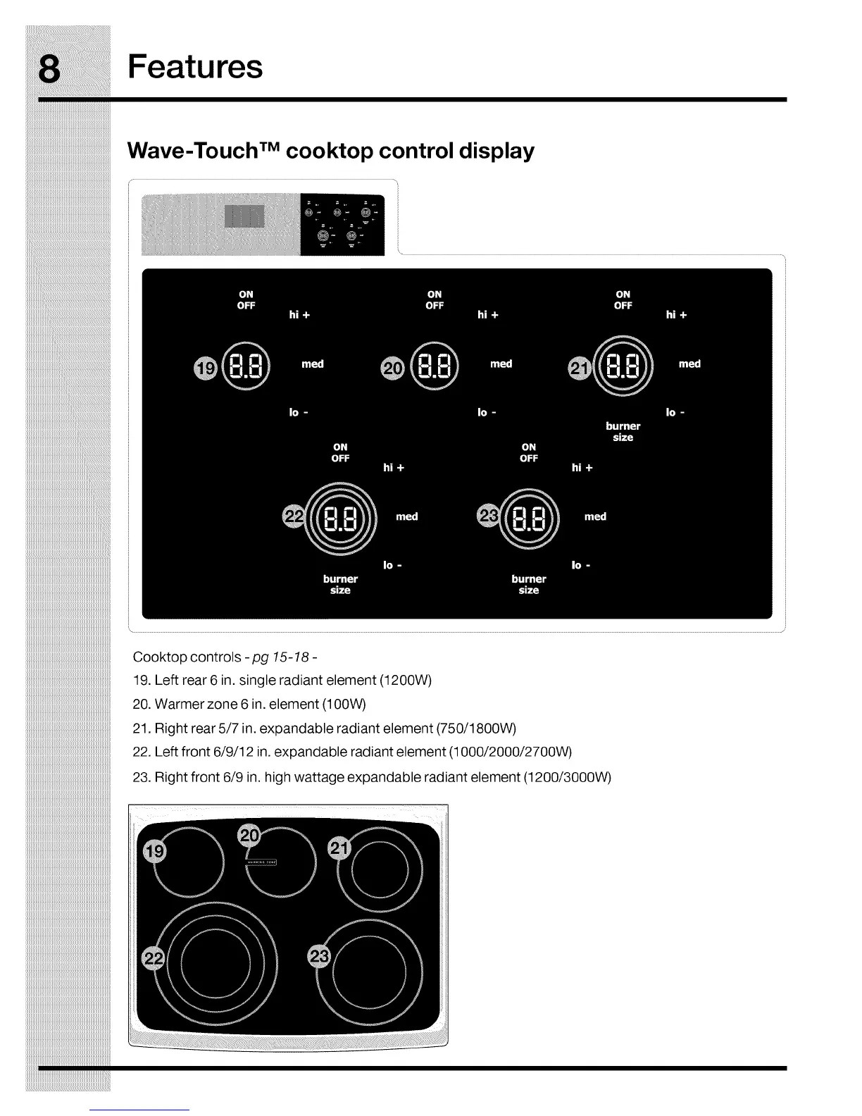 Wave-TouchTMcooktopcontroldisplay