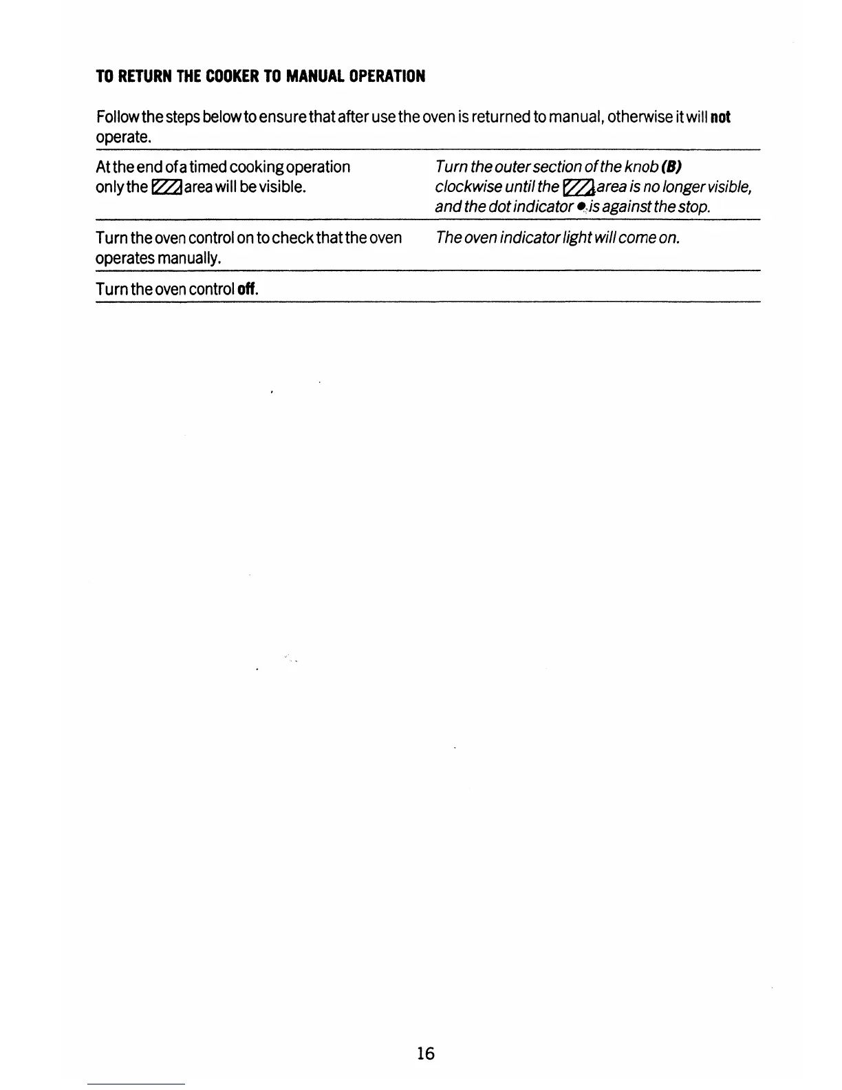 Electrolux CF502 - To Return the Cooker to Manual Operation