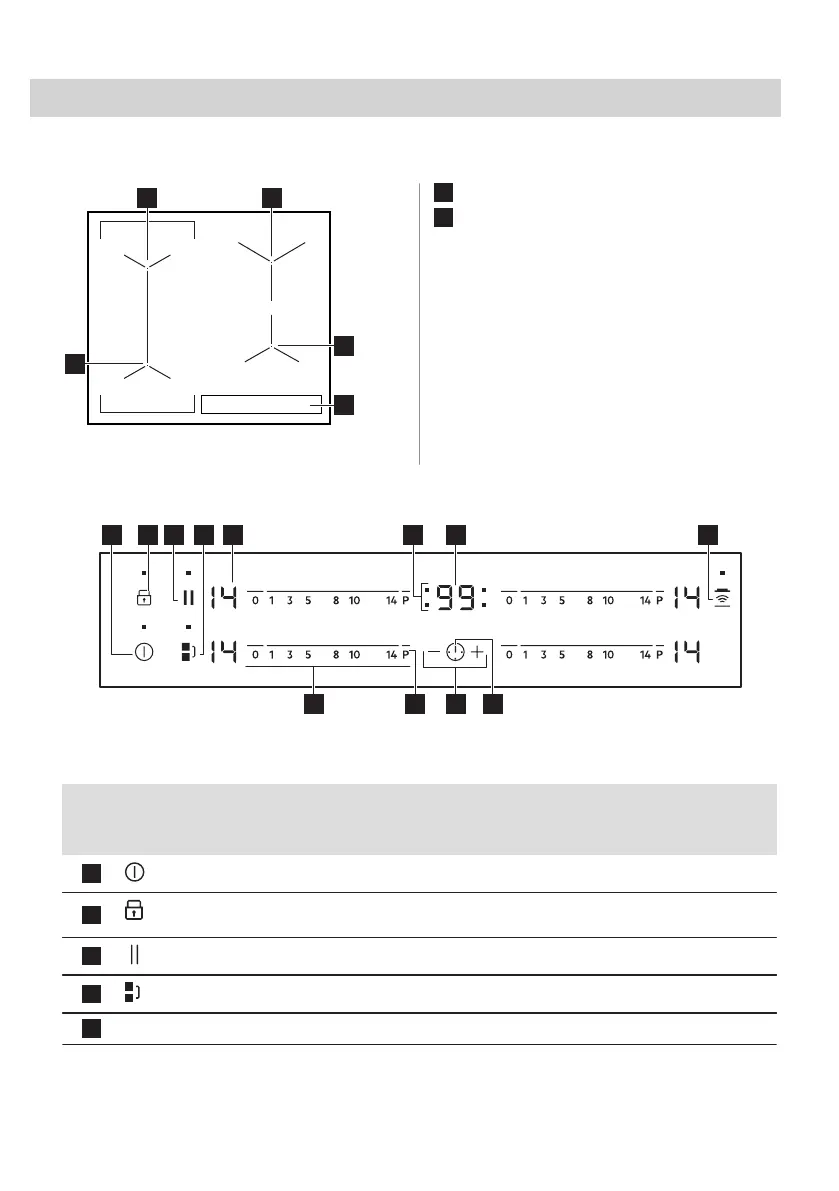 MARCHE/ARRÊT Pour allumer et éteindre la table de cuisson.