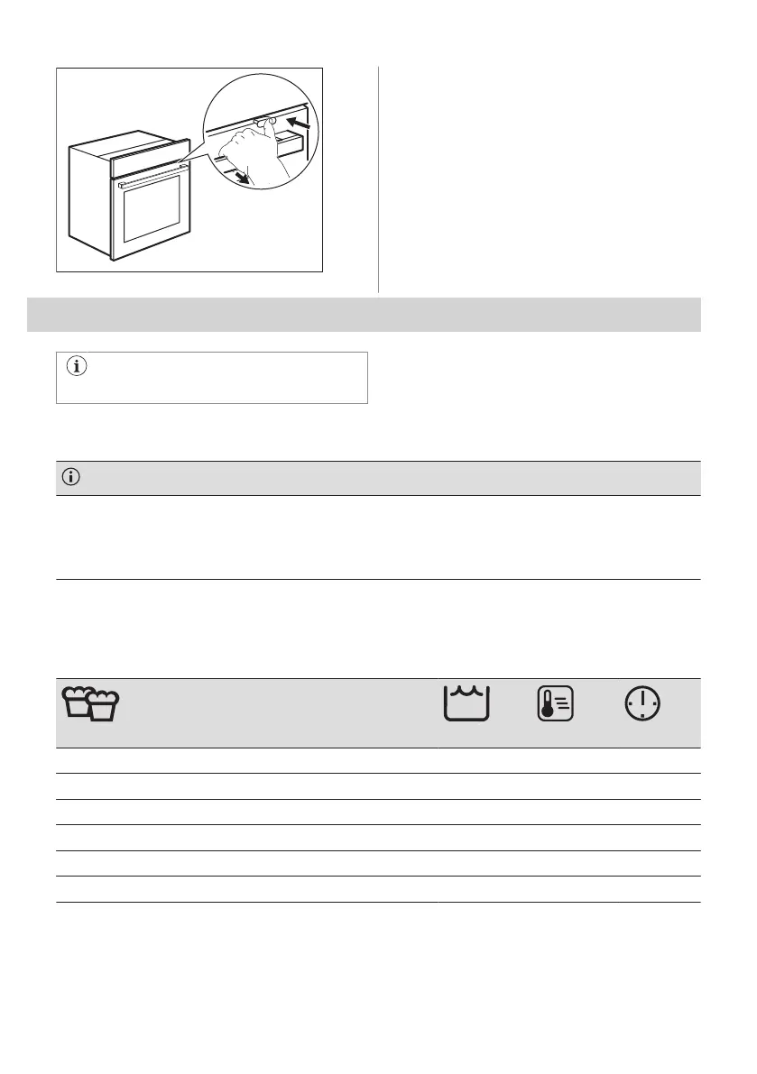 Temperaturer og steketider i tabellene er kun veiledende. De avhenger av oppskriftene og kvalitet og mengde