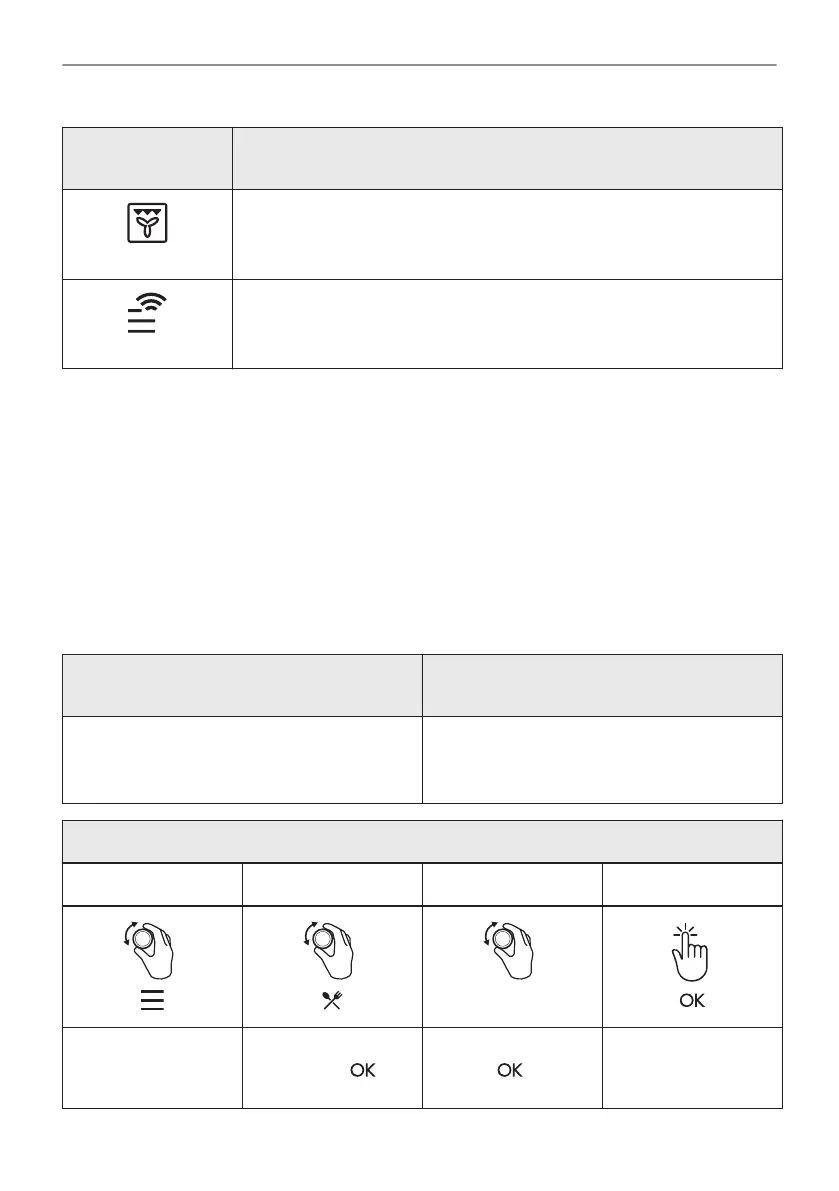 Så här öppnar du menyn: Tillagningshjälp, Rengöring, Inställningar.