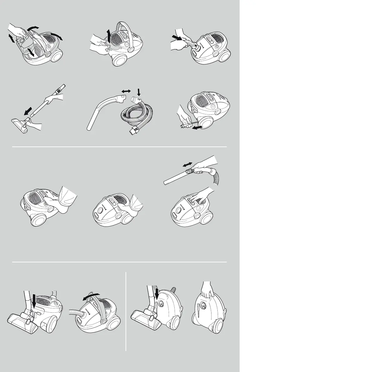 1 a Asiguraţi-vă că mânerul aspiratorului este coborât.