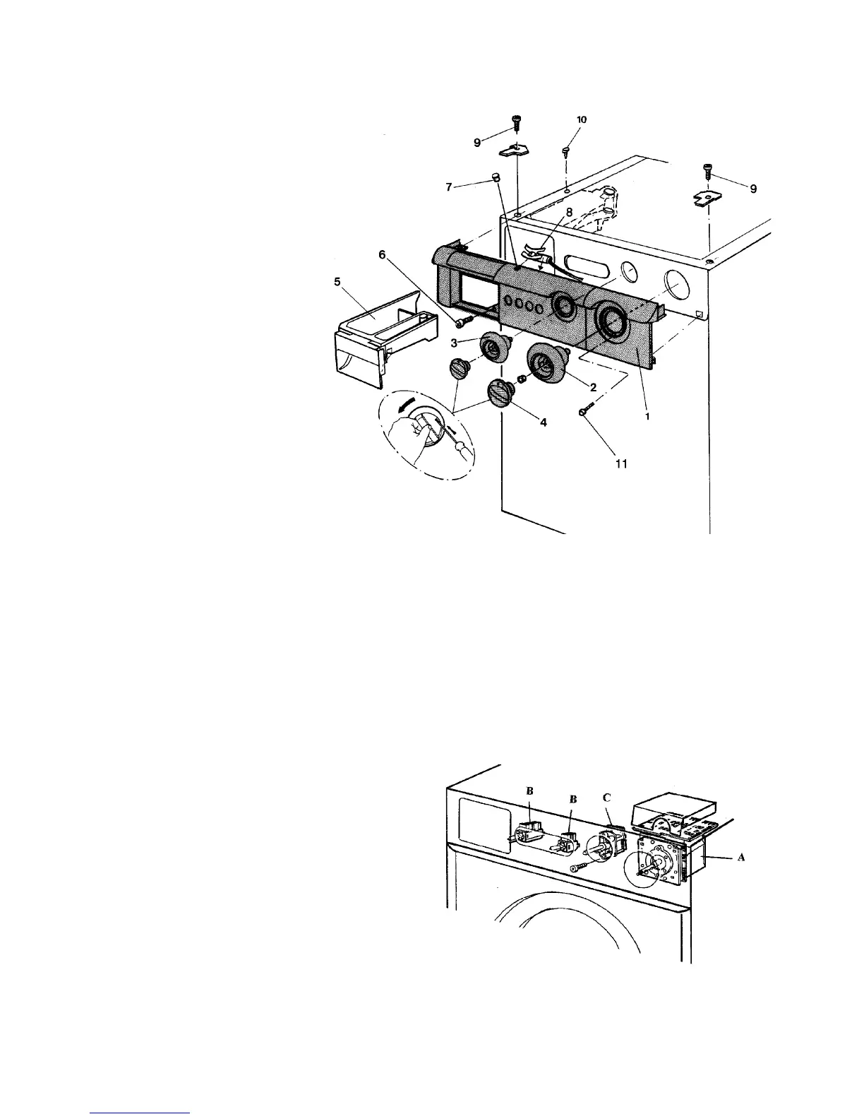 6 Remove the detergent hatch (5) by jerking iIt past a stop.