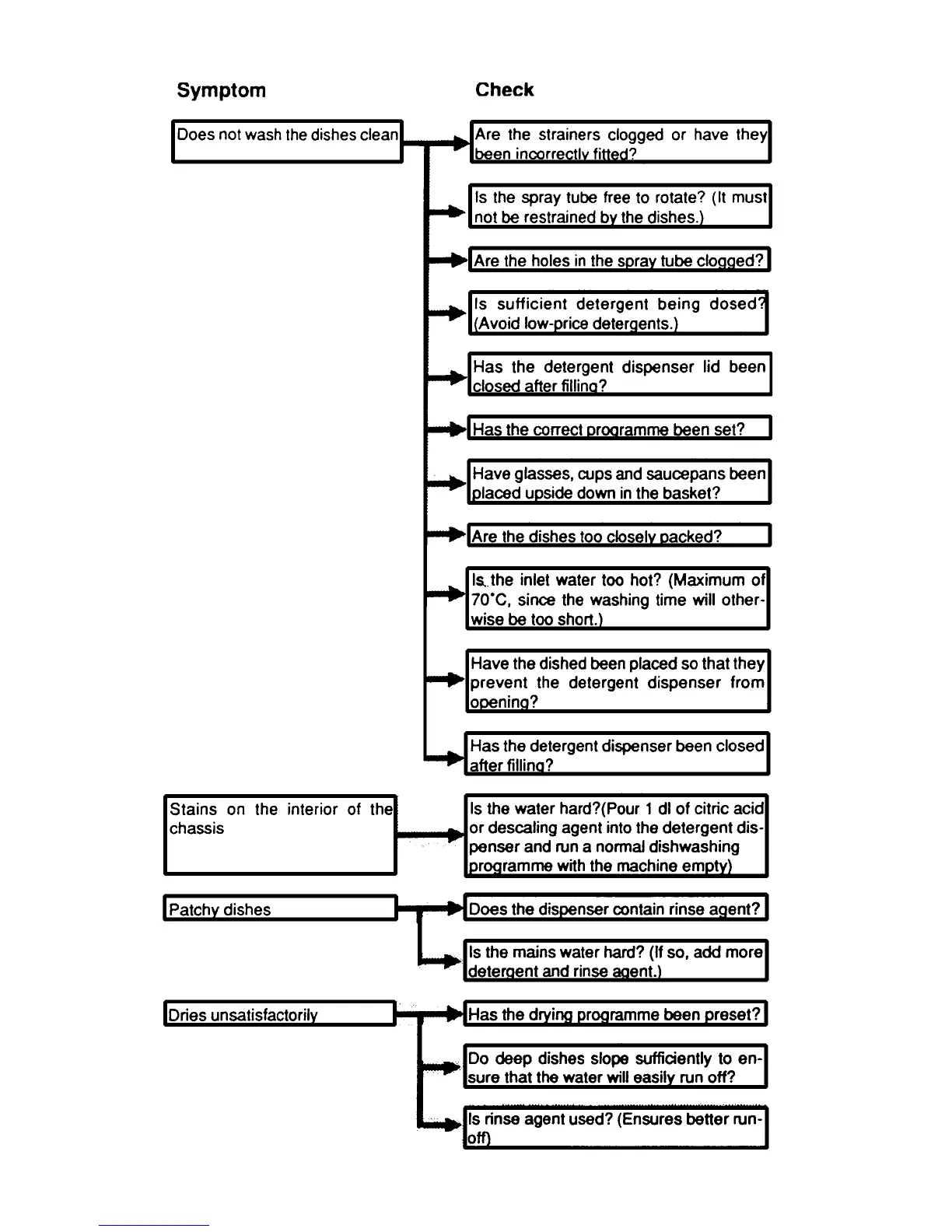 Electrolux Compact - Fault Tracing - Washing Performance; Poor Dishwashing Results; Stains and Patchy Dishes; Unsatisfactory Drying