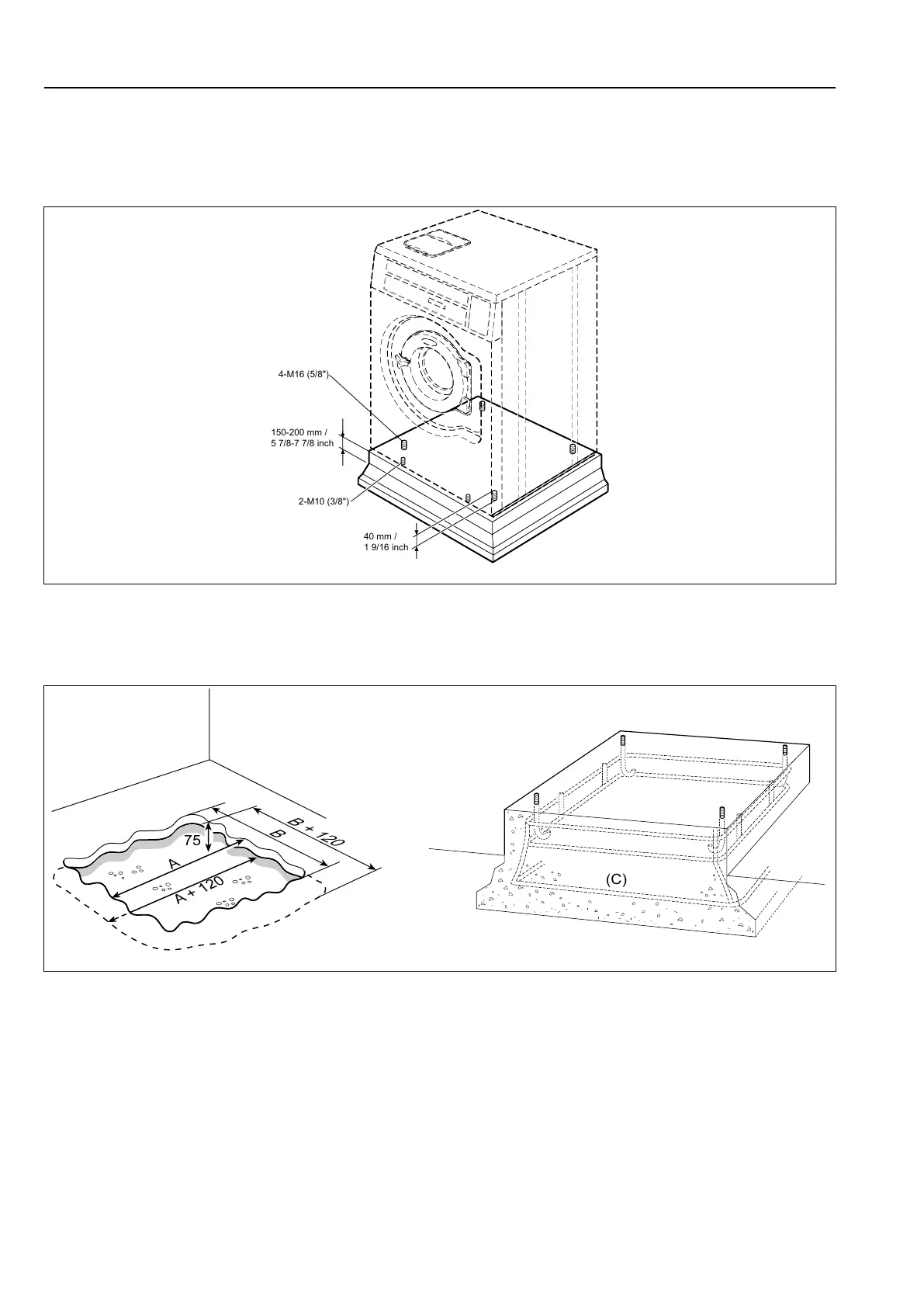 • The concrete must be set and strength at least 20.7 MPa before mounting the machine on the plinth.