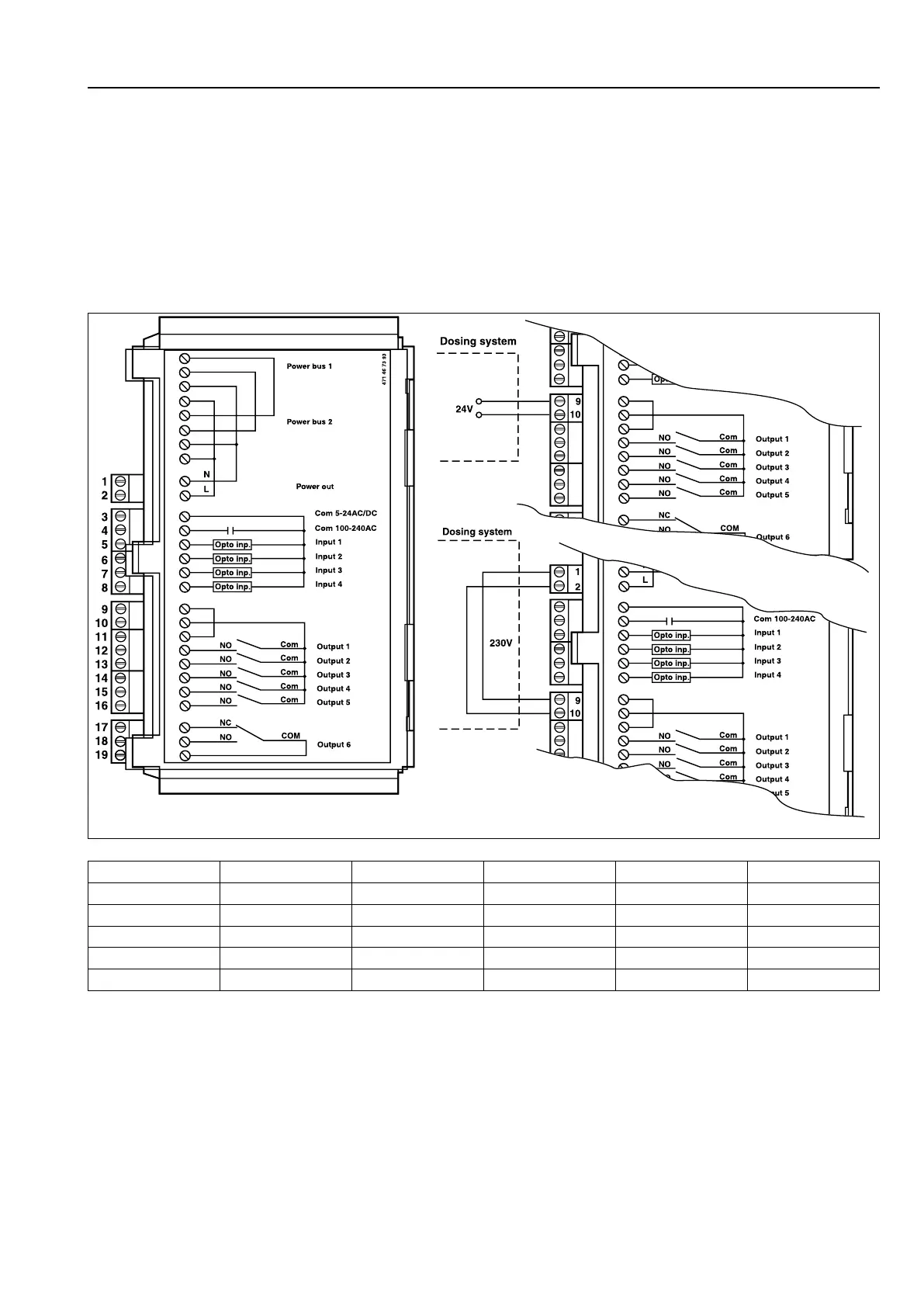 Connect the power supply (e.g. 24V DC) for the external liquid supplies to 9 and 10. If an internal power supply (from