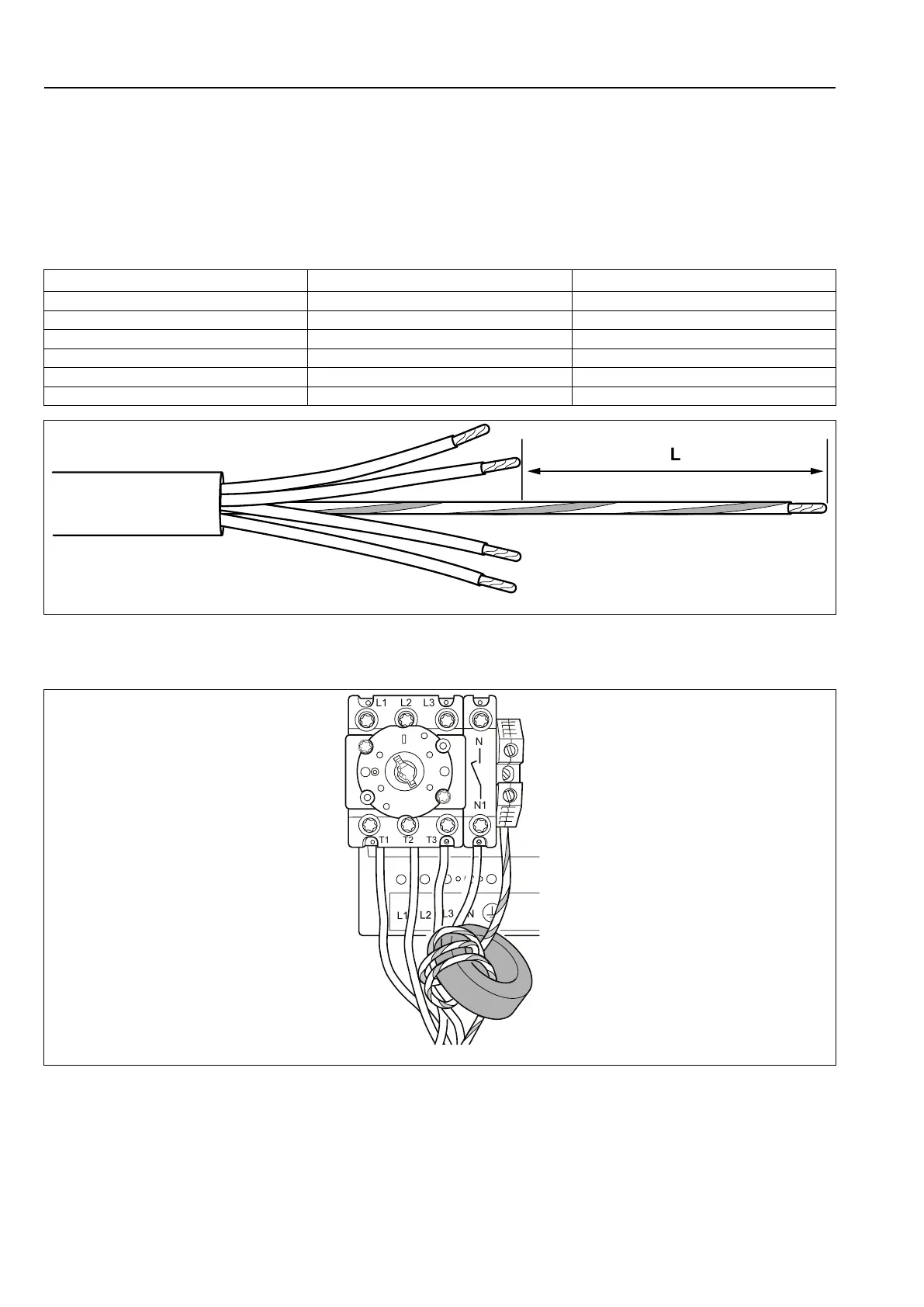 When the power cord has been prepared according to the table, wrap the protective earth (PE) wire through the fer-