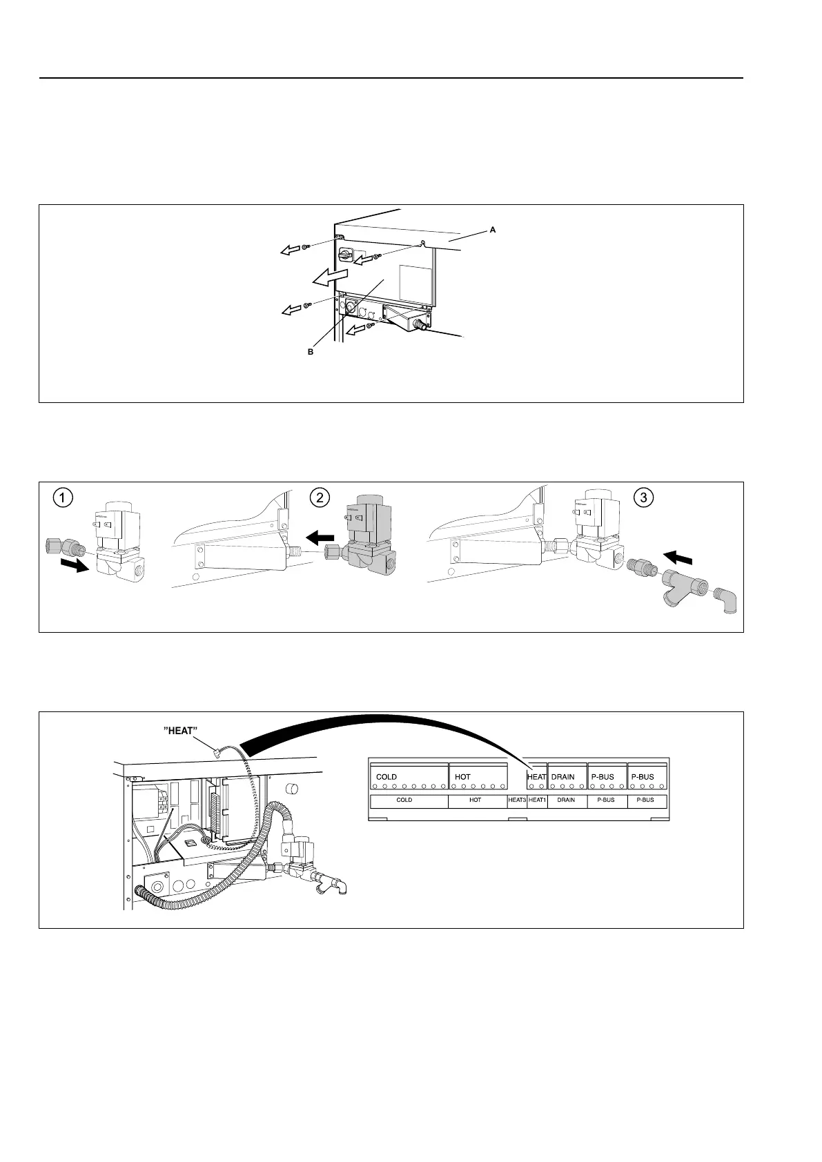 Mount the nipple to the steam valve. Mount the steam valve on the machine. Mount nipple, strainer and elbow. Note