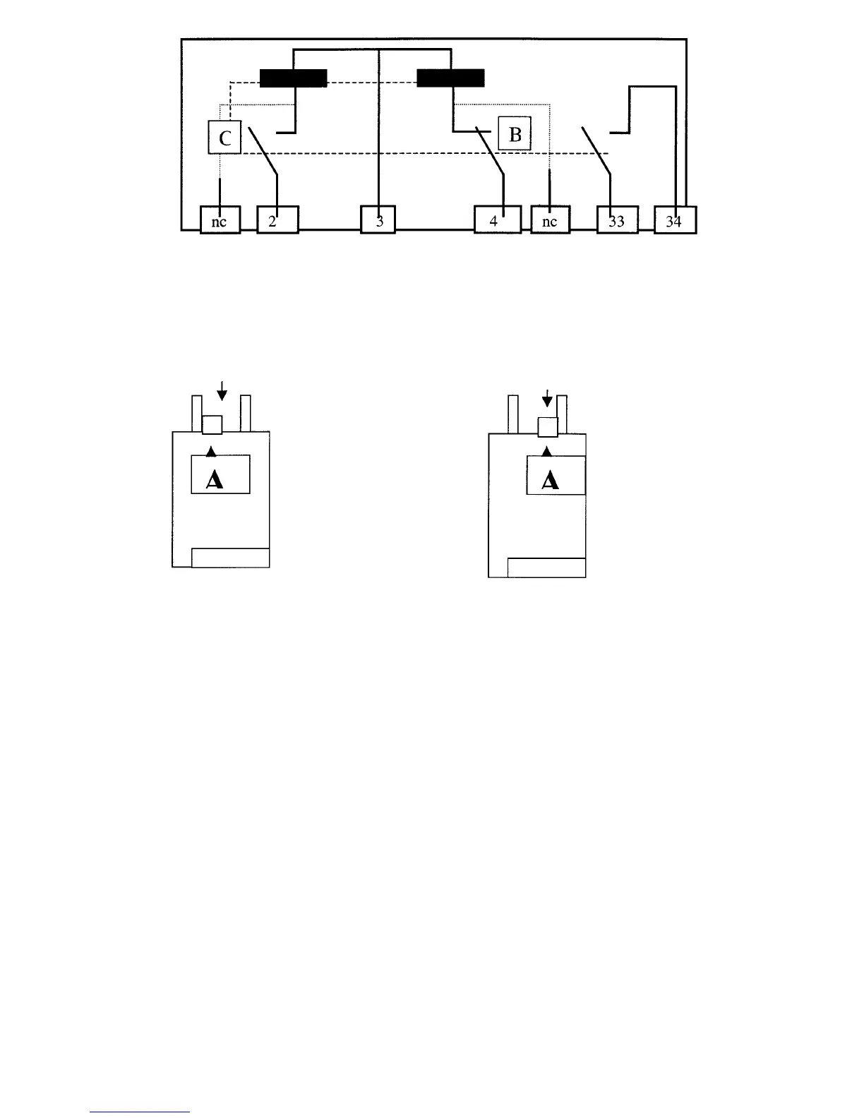 same time, the internal contact “B” opens and disconnects the lock path. The switch contacts 33/