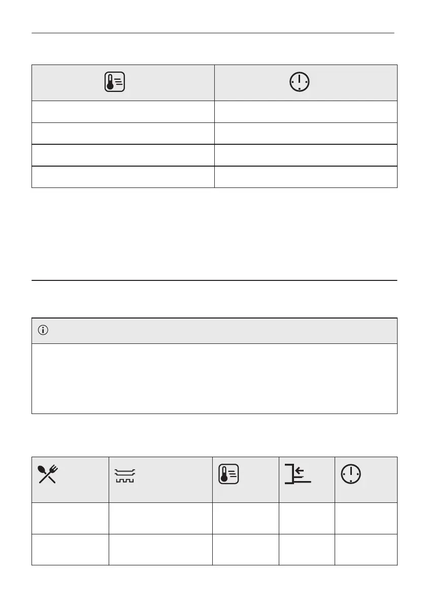The temperature and cooking times in the tables are guidelines only. They depend on the recipes