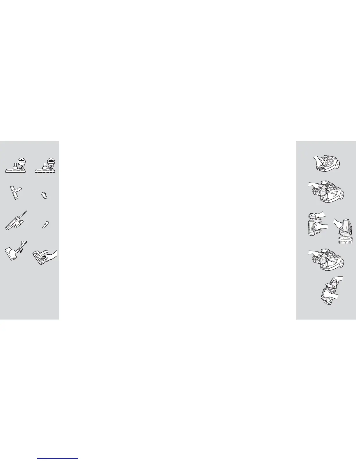 32 Every now and then the dust container should be cleaned. Remove lids at both ends and rinse the container