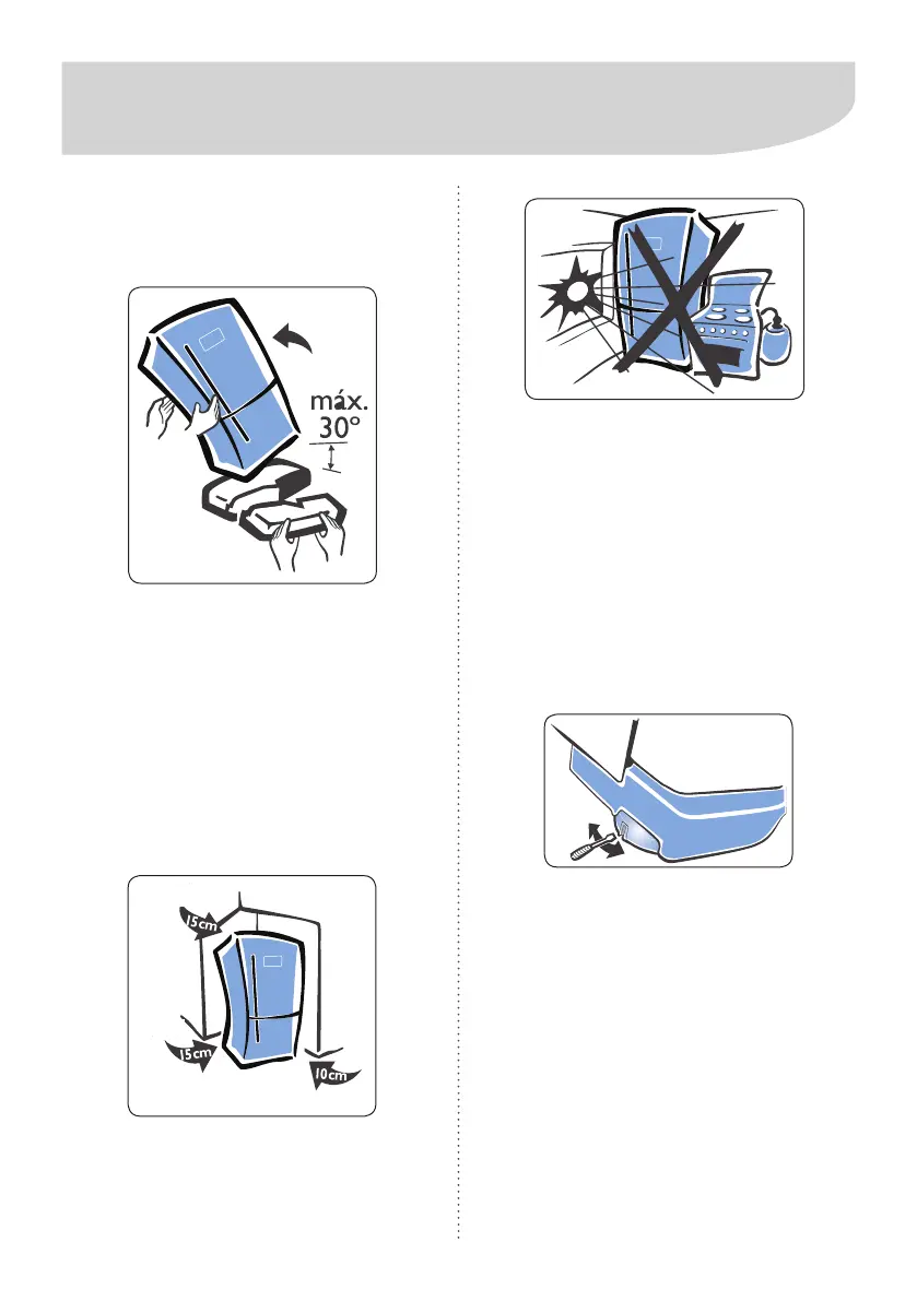 Arriba: 15 cm / laterales: 10 cm / Atrás: 15 cm.