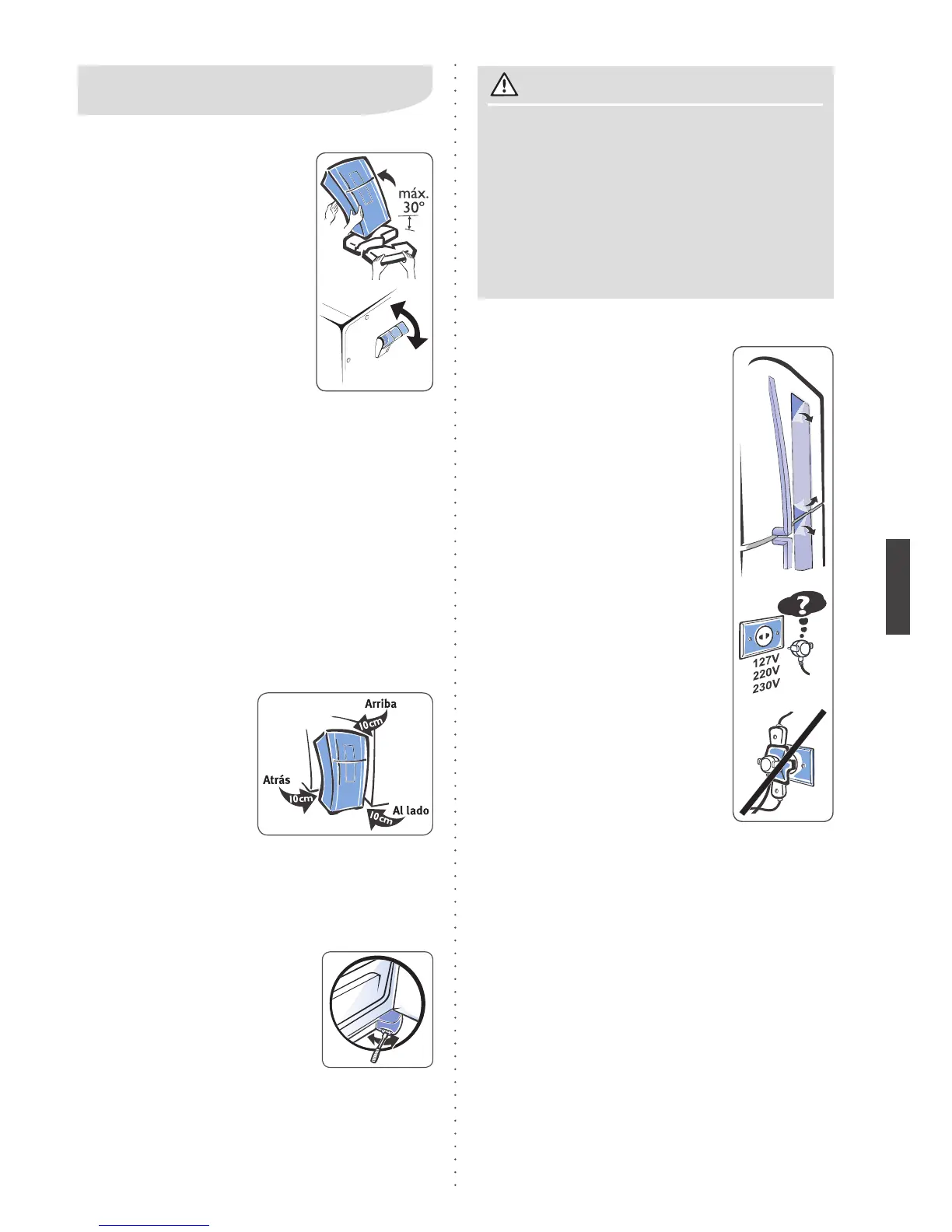 Para el posicionamiento denitivo del refrigerador,