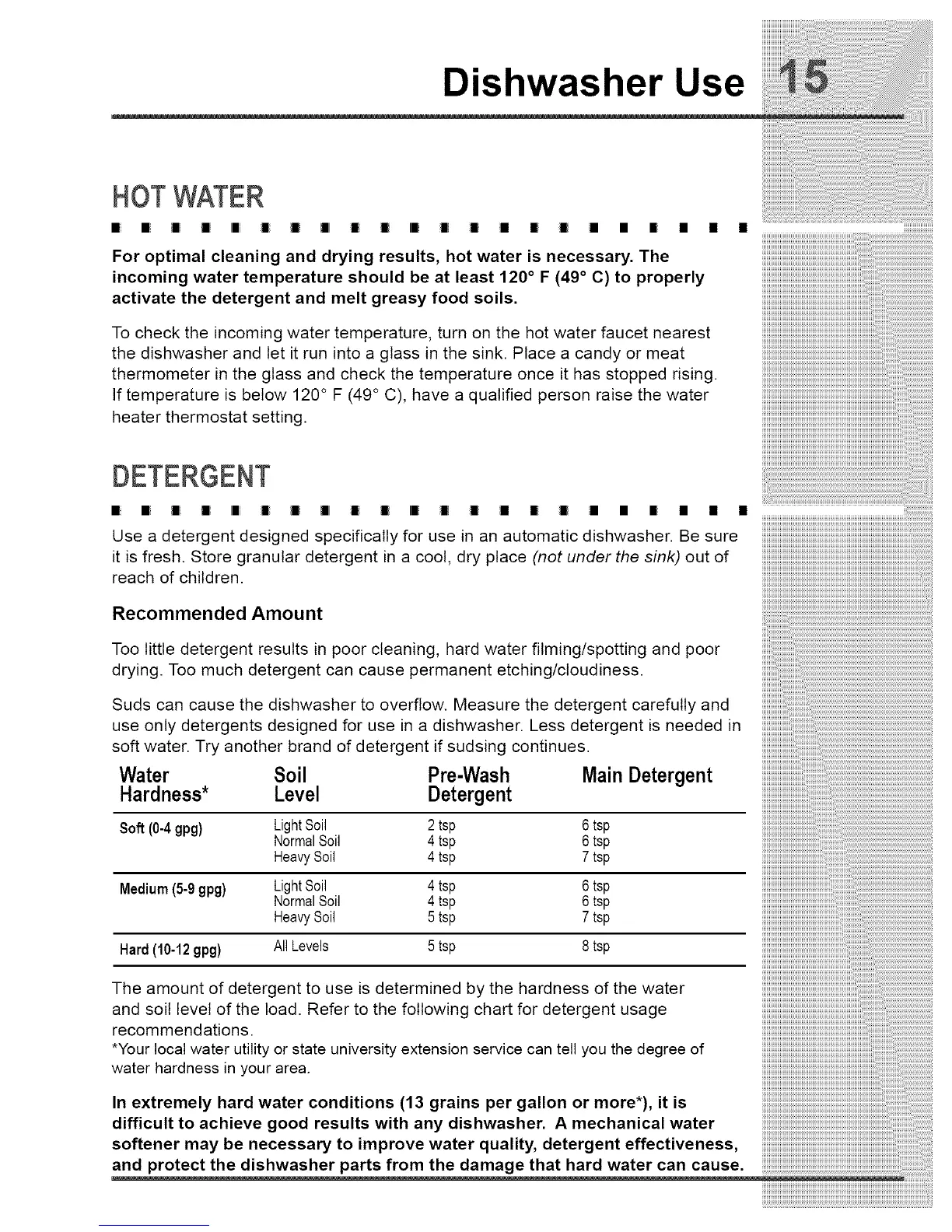 use only detergents designed for use in a dishwasher. Less detergent is needed in