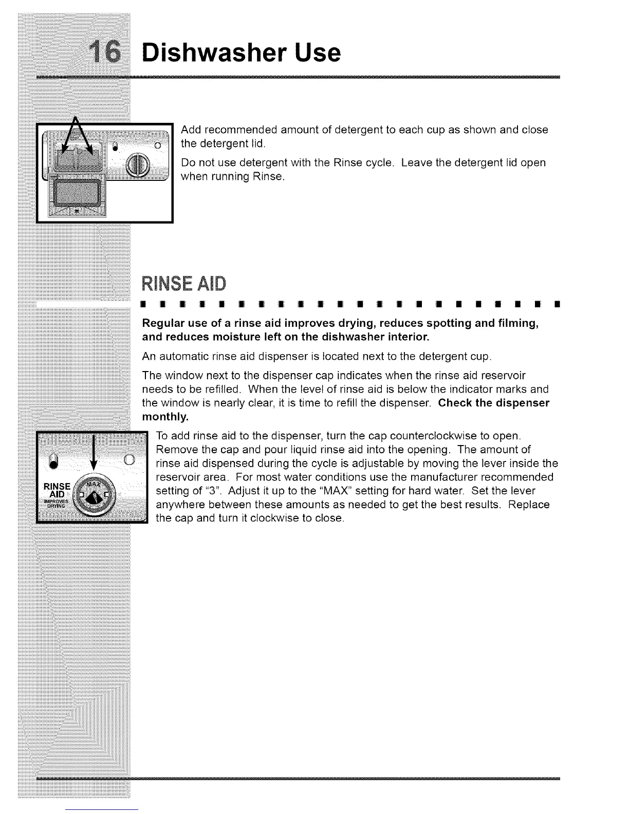 needs to be refilled. When the level of rinse aid is below the indicator marks and