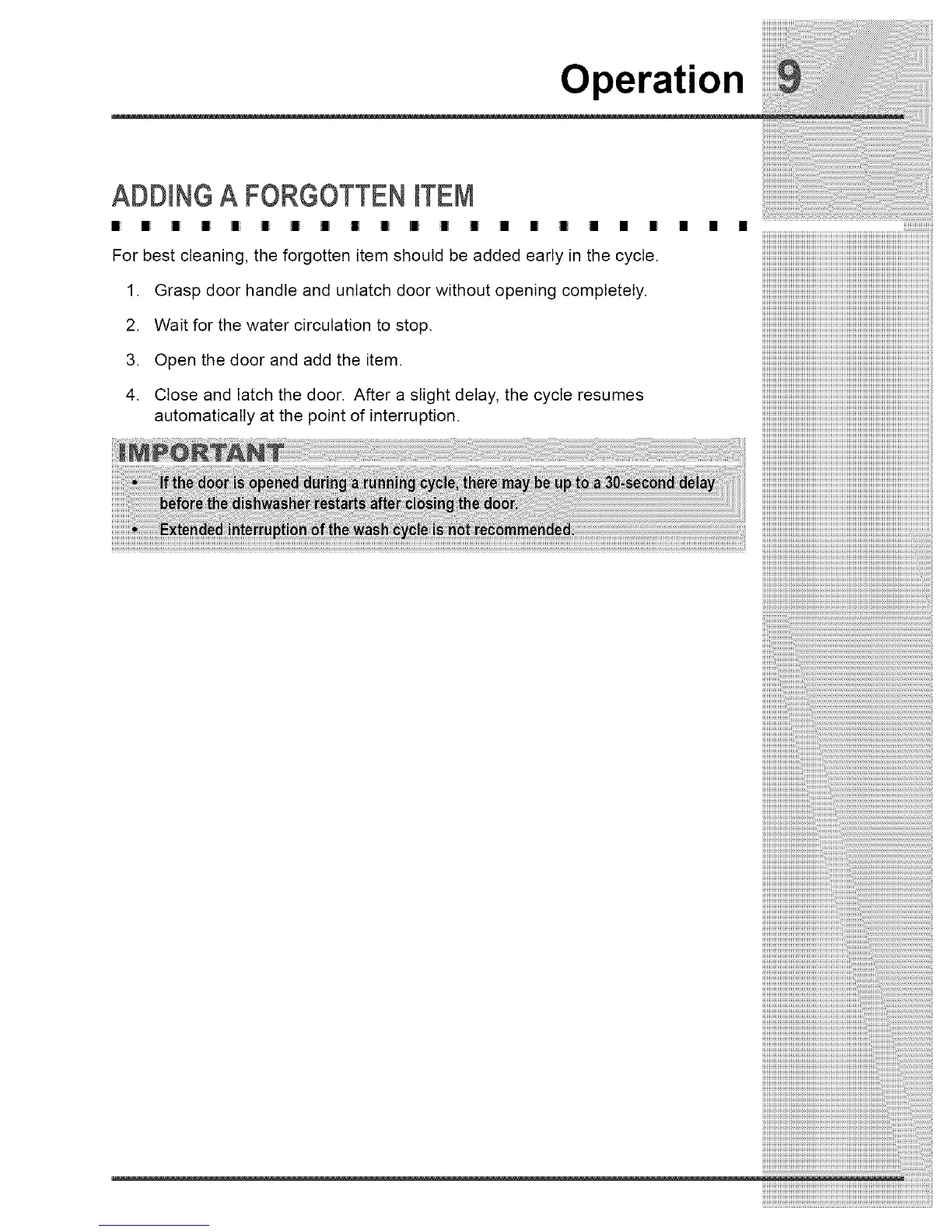 4. Close and latch the door. After a slight delay, the cycle resumes