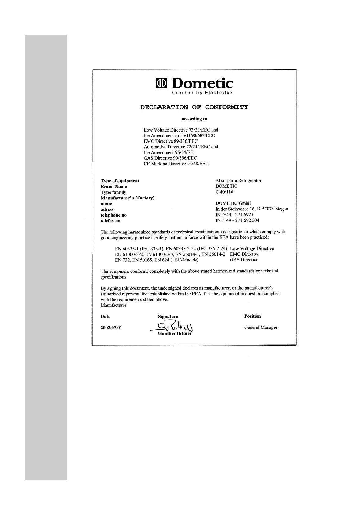 Electrolux Dometic RM 6271 - Declaration of Conformity