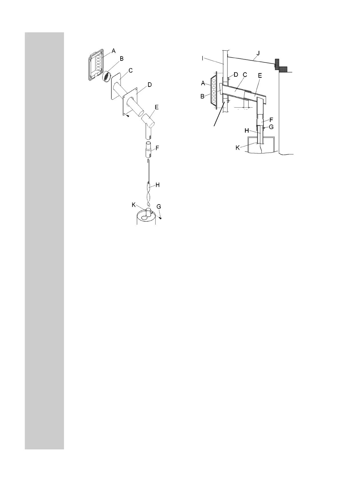 4. Connect flue pipe (C) to T-piece (E). If necessary, shorten flue pipe (C) to the