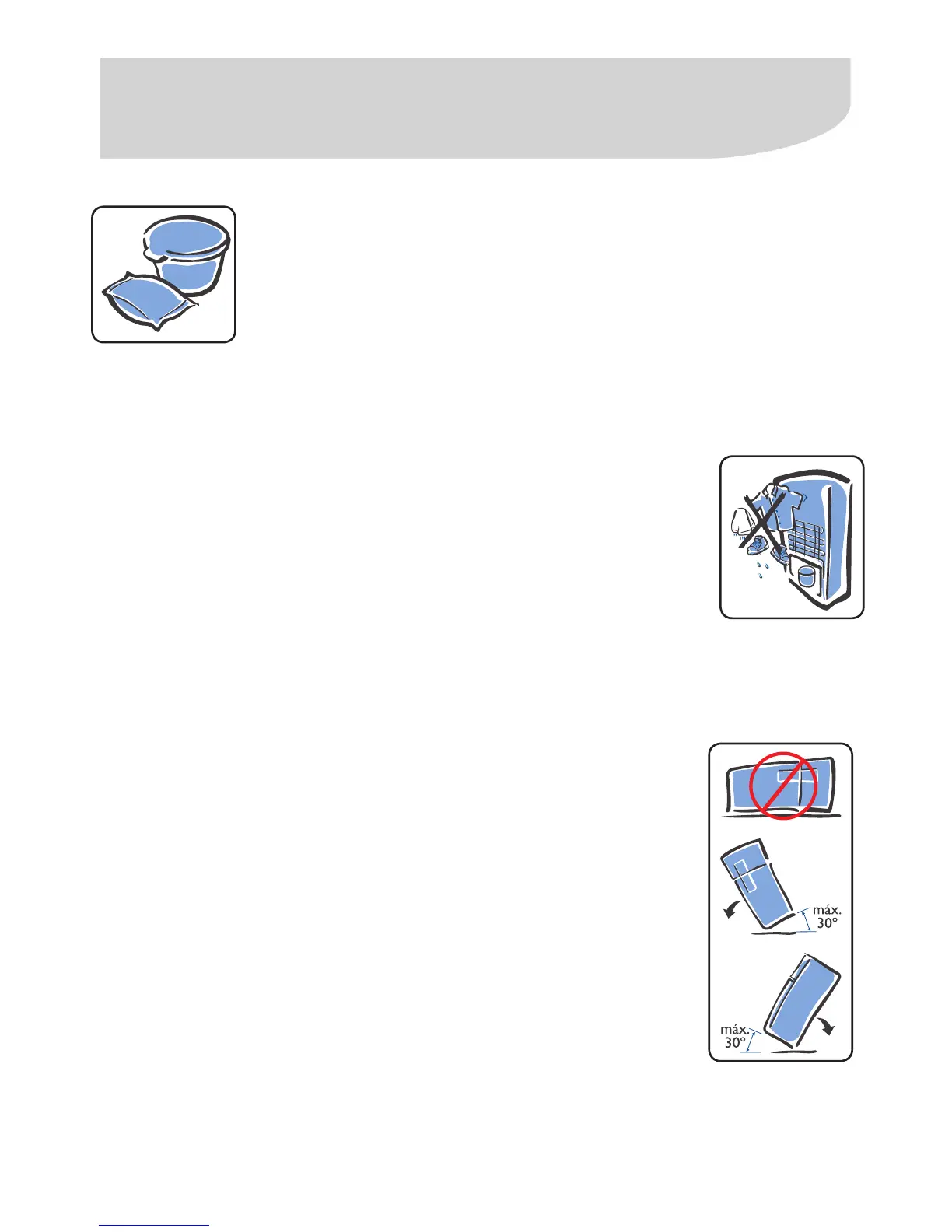 No coloque botellas de vidrio, plástico o