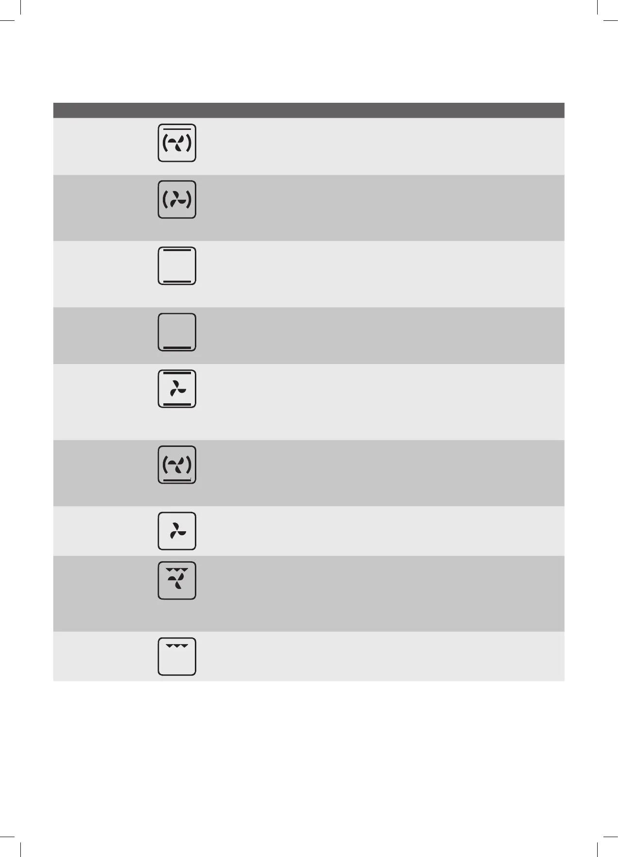Your oven will have a selection of the following functions as illustrated by the symbols and descriptions below.