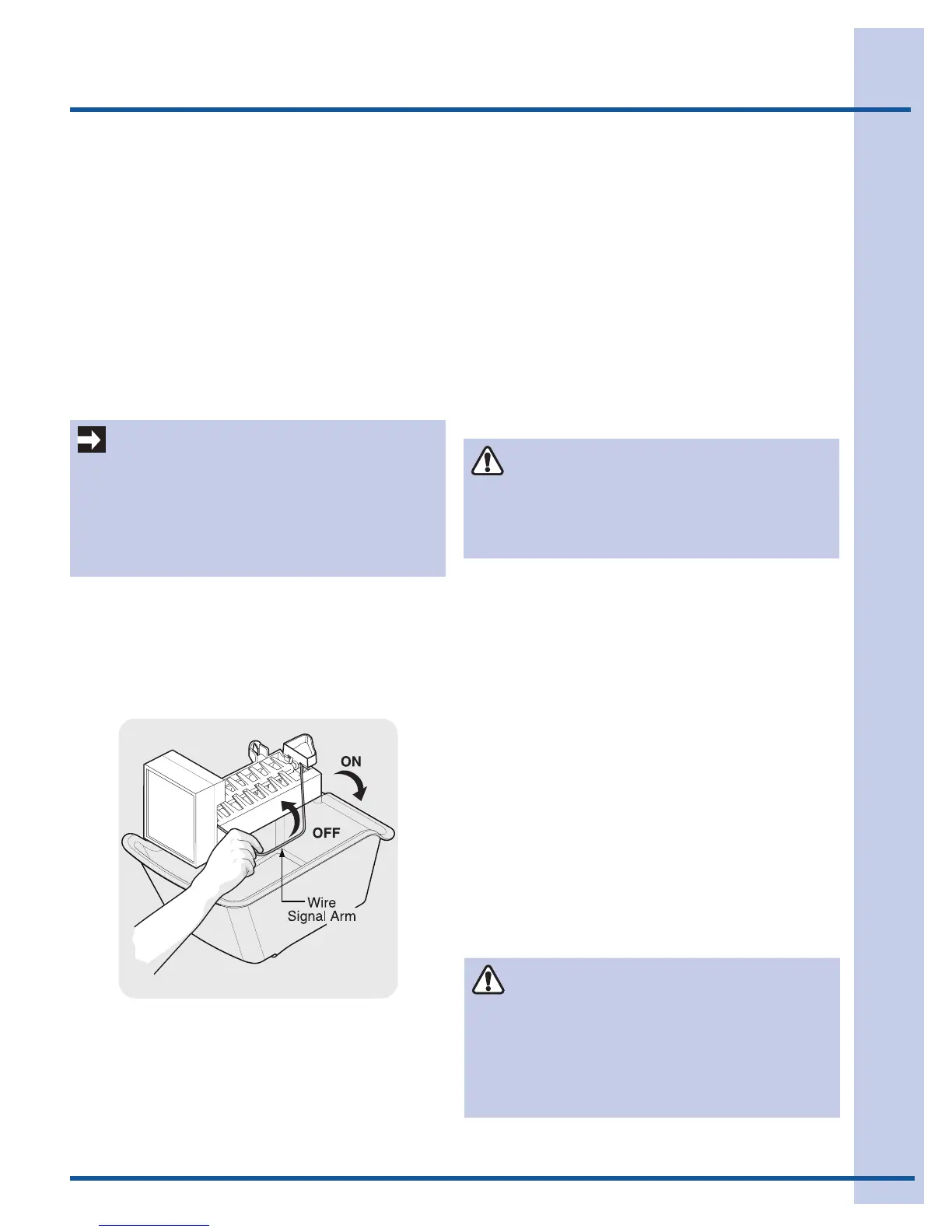 arm to turn the ice maker OFF and lower the wire signal