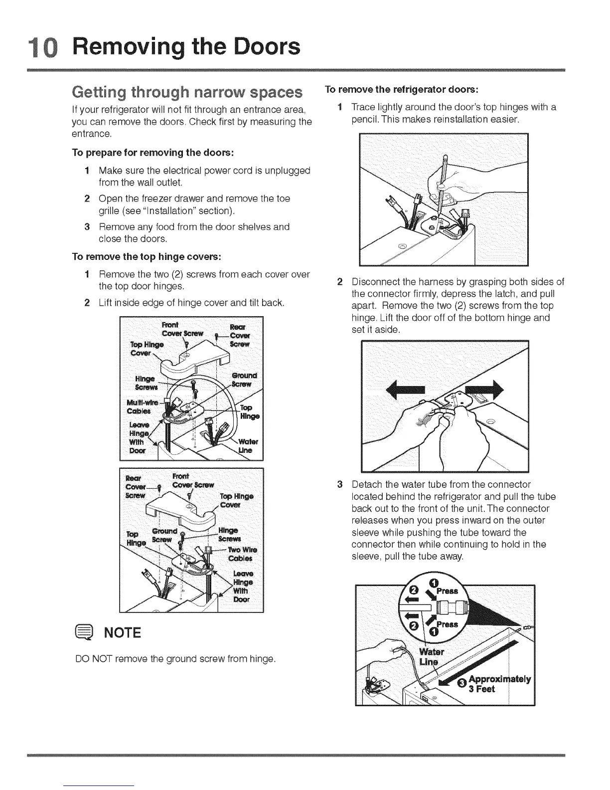 To remove the refrigerator doors: